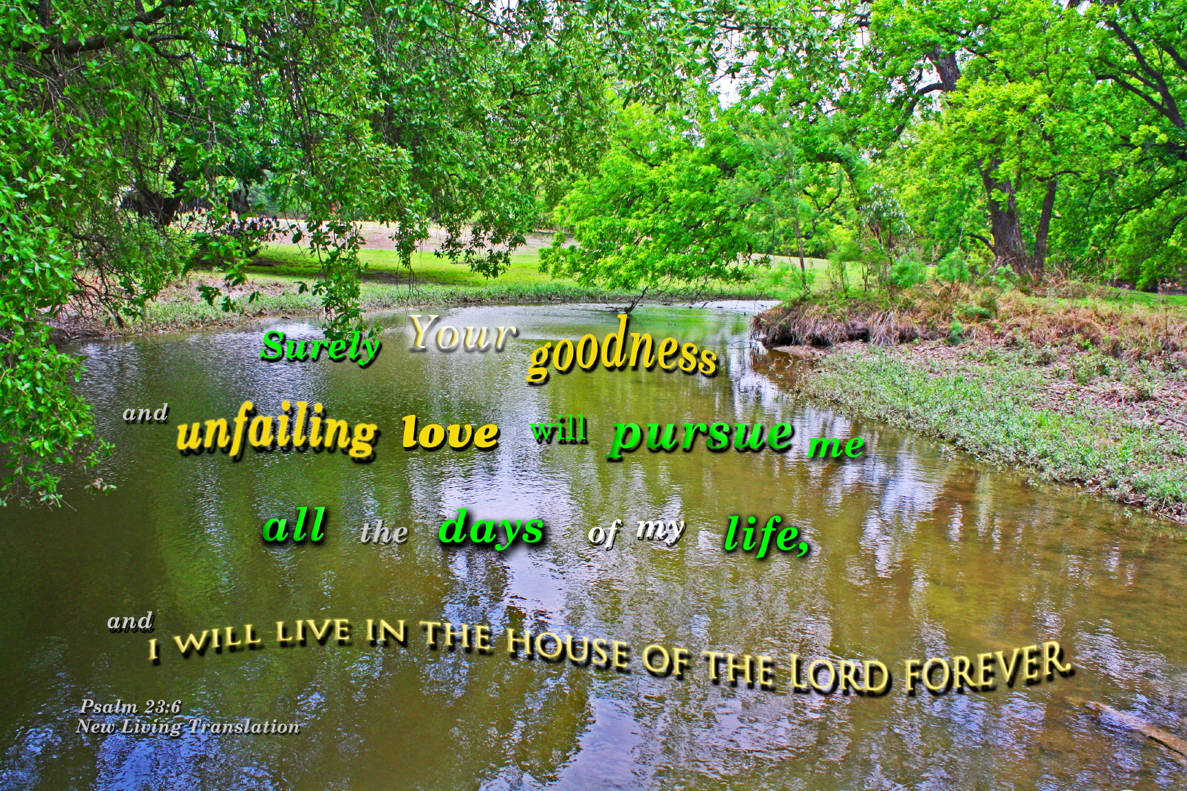 Creek with trees and lovely reflections createdPhoto Title: Surely Goodness Will Follow Me