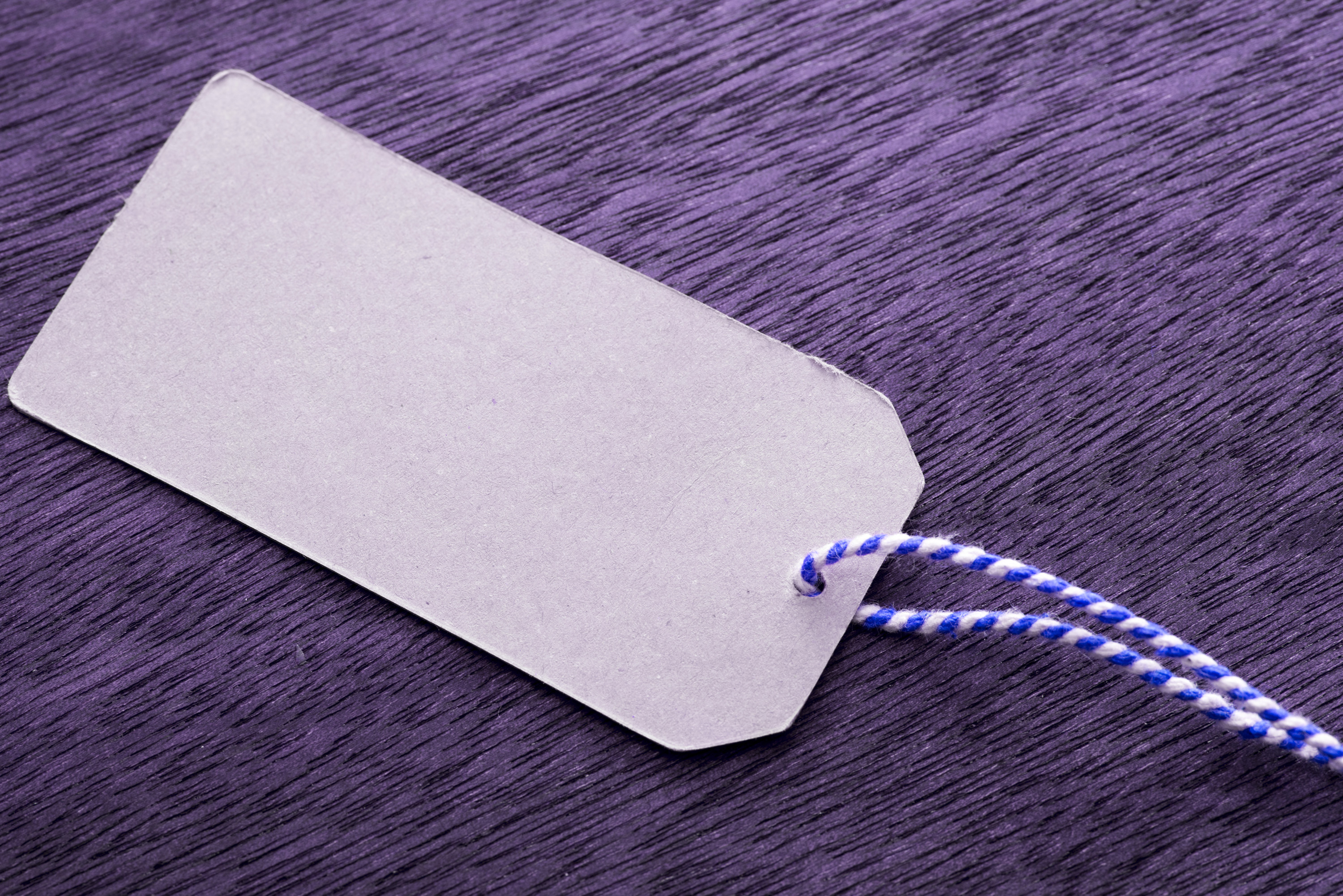 Keywords: shopping, tag, close up, paper, string, striped, purple, background, price, label, sale, retail, copy space, gift, white, cardboard, sign, symbol, buy, object, blank, note, attachment