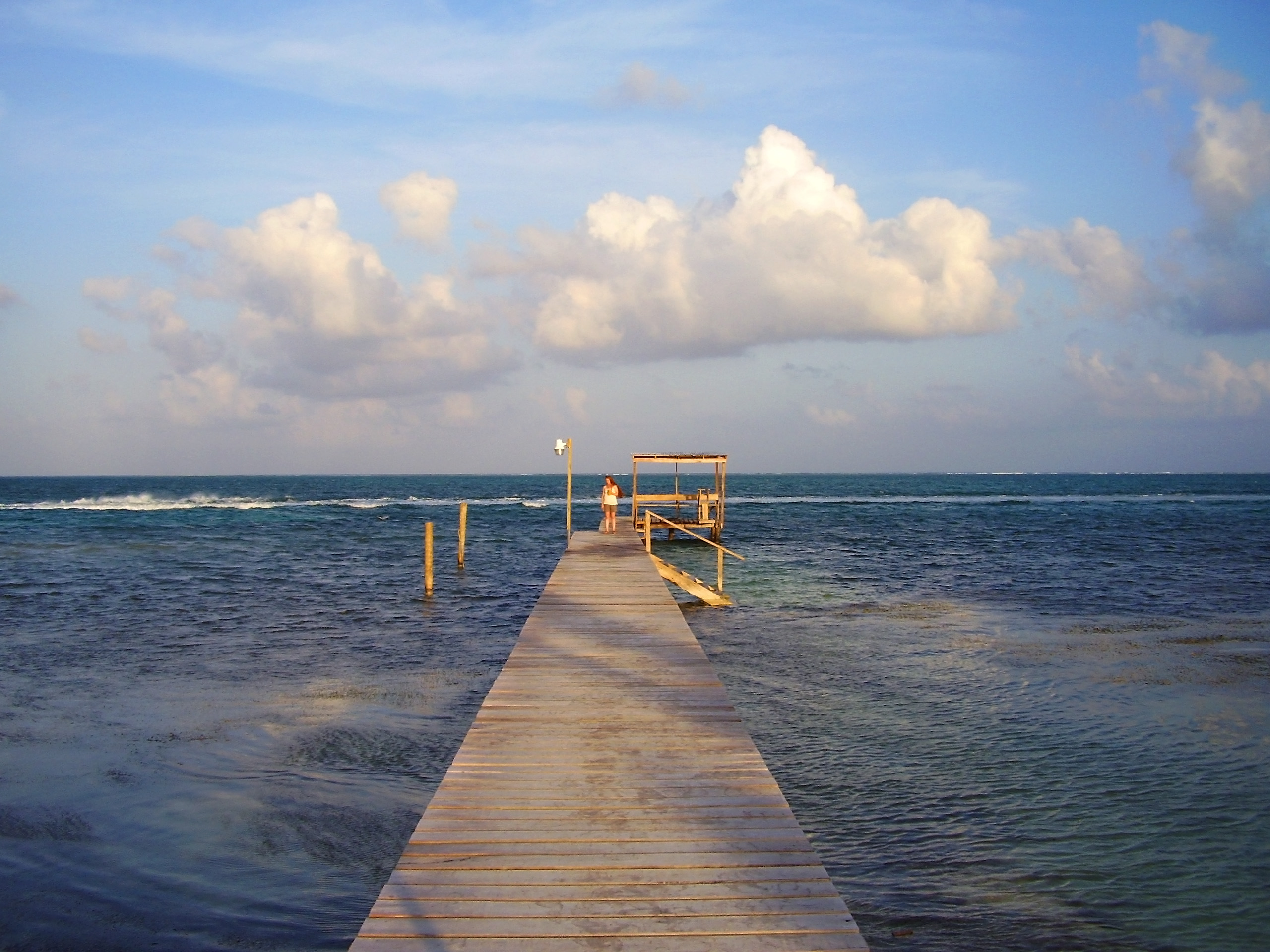 a long jetty strecthing out into the warters fo the Caribbean sea