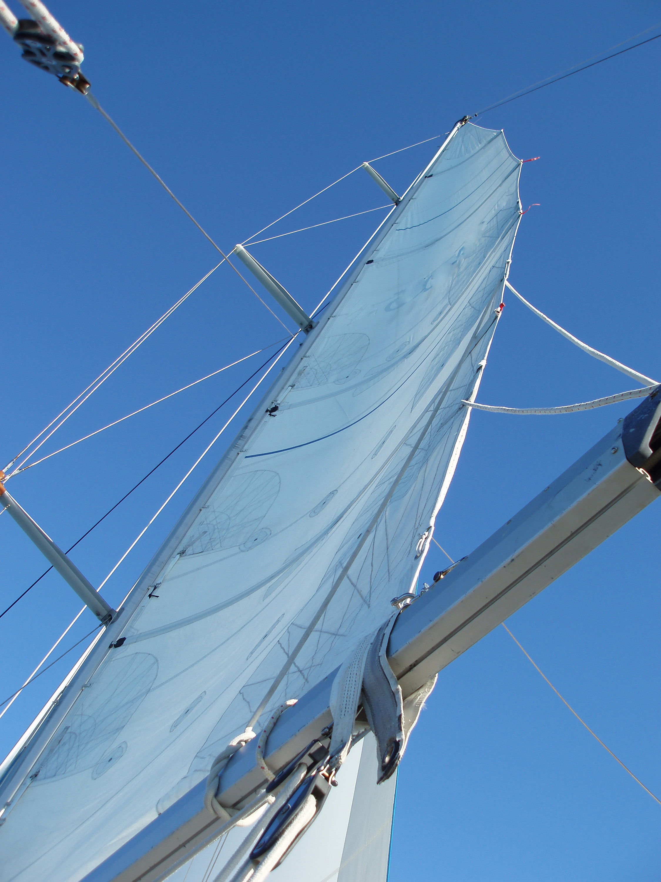 Keywords: sail, boom, yacht, sailing, sail, yachting, blue, sky, low angle, upwards, rigging, mast
