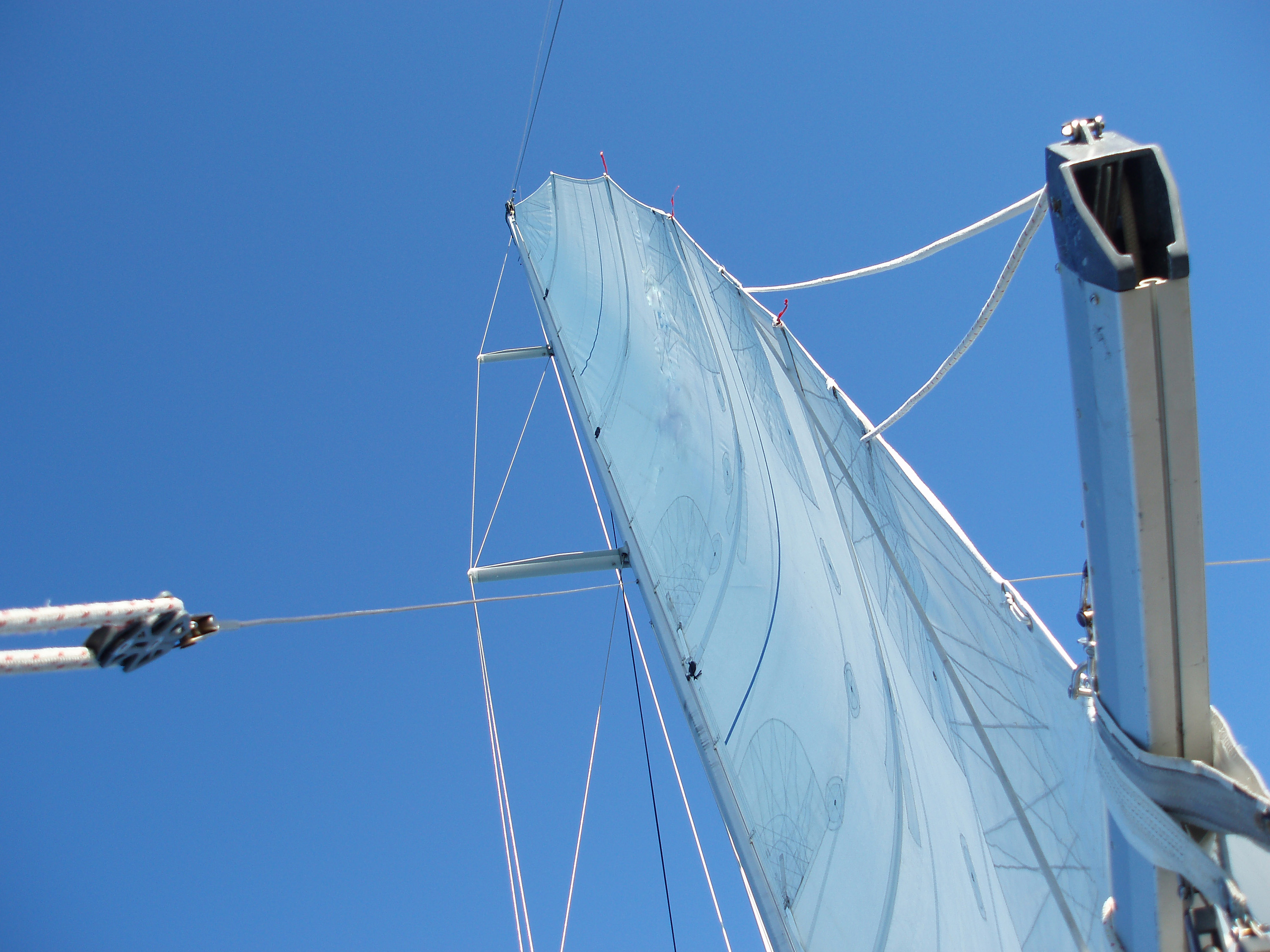 Keywords: sail, boom, yacht, sailing, sail, yachting, blue, sky, low angle, upwards, rigging, mast