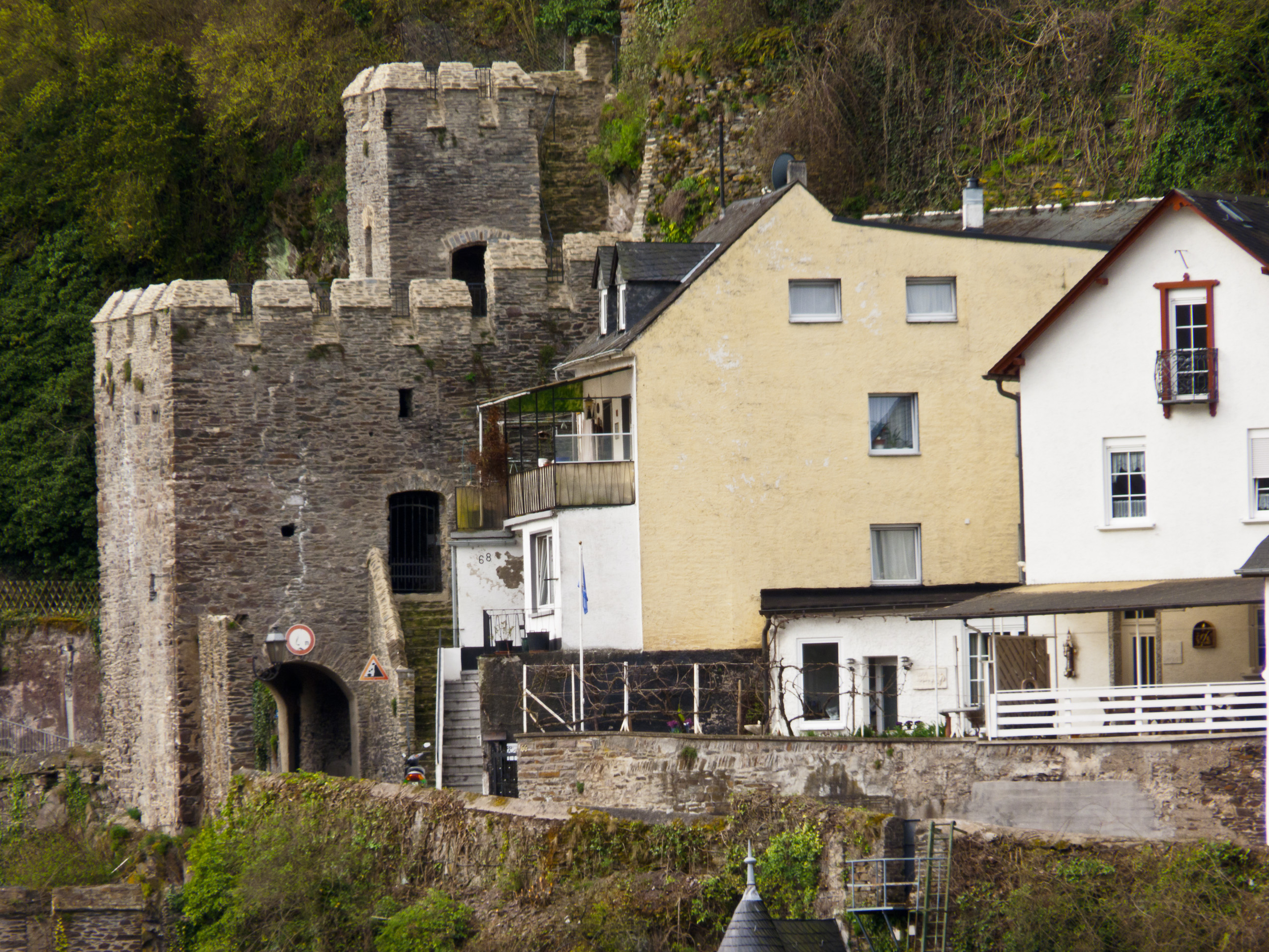 At Cochem, Germany on the Mosel river these buildings stand side by side. The castellated gatehouse and the relatively modern houses used today.Photo Title: Buildings Ancient and Modern