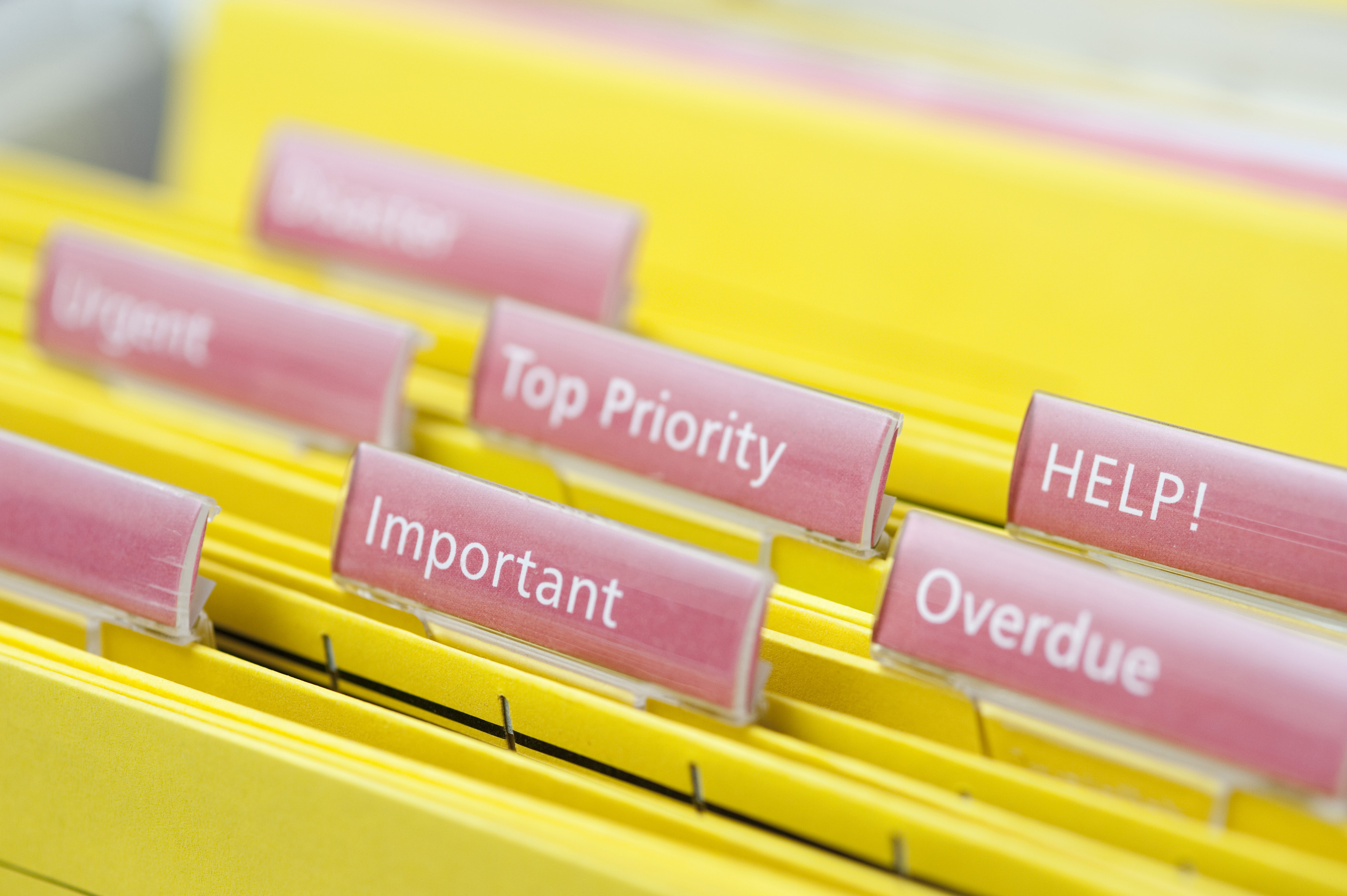 Keywords: business, busy, documents, files, filing, labels, office, organization, paperwork, prioritizing, tags, important, urgent, red, outstanding, yellow, critical