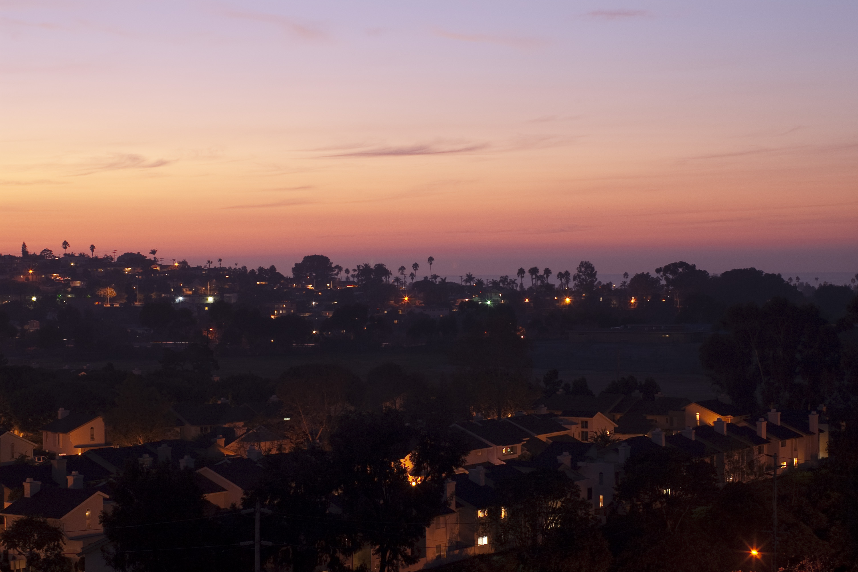 Keywords: palm, house, houses, suburbia, town, buildings, suburbs, orange, sunset, glow, dusk, view