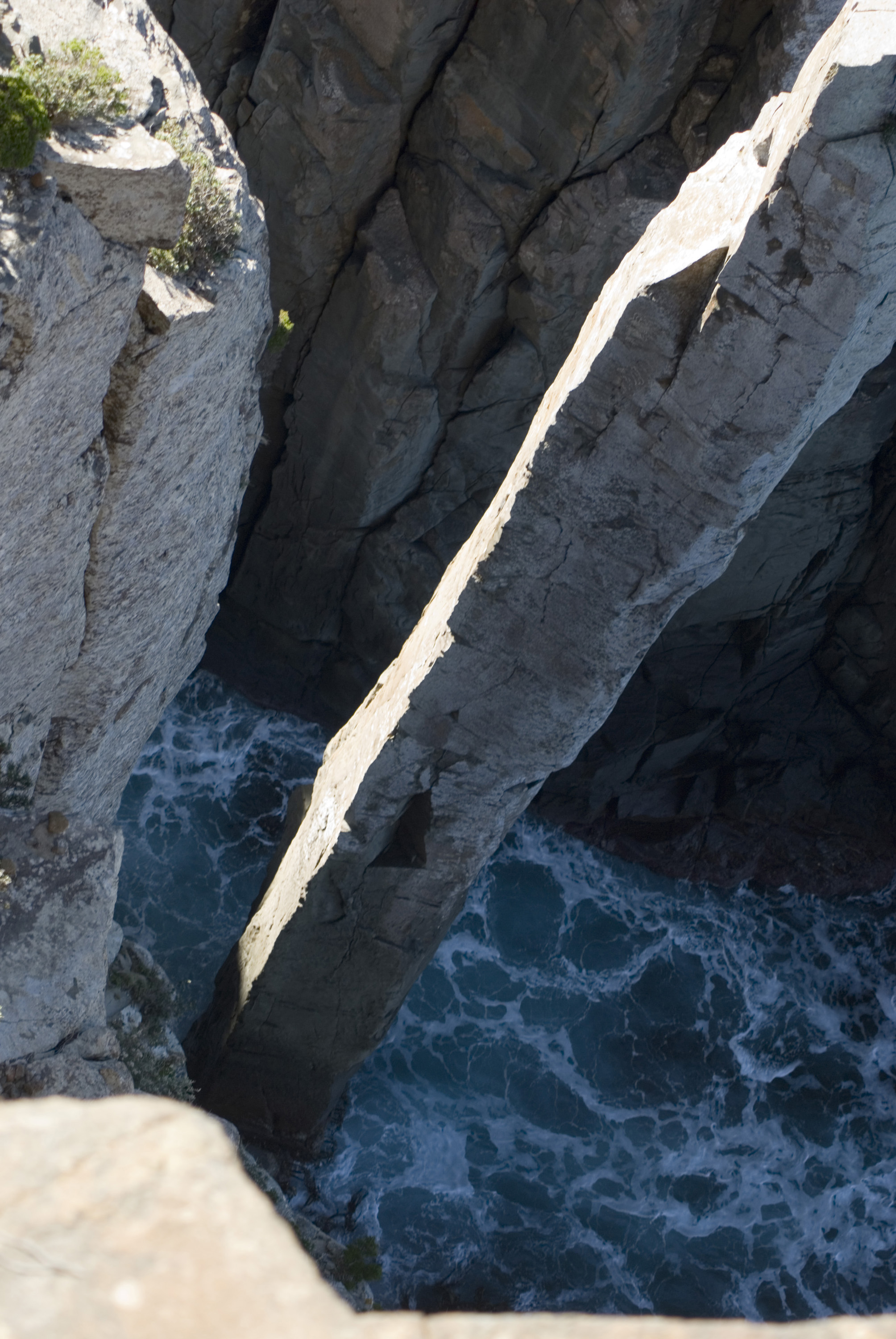 looking down towards the base of the totem pole, cape hauy