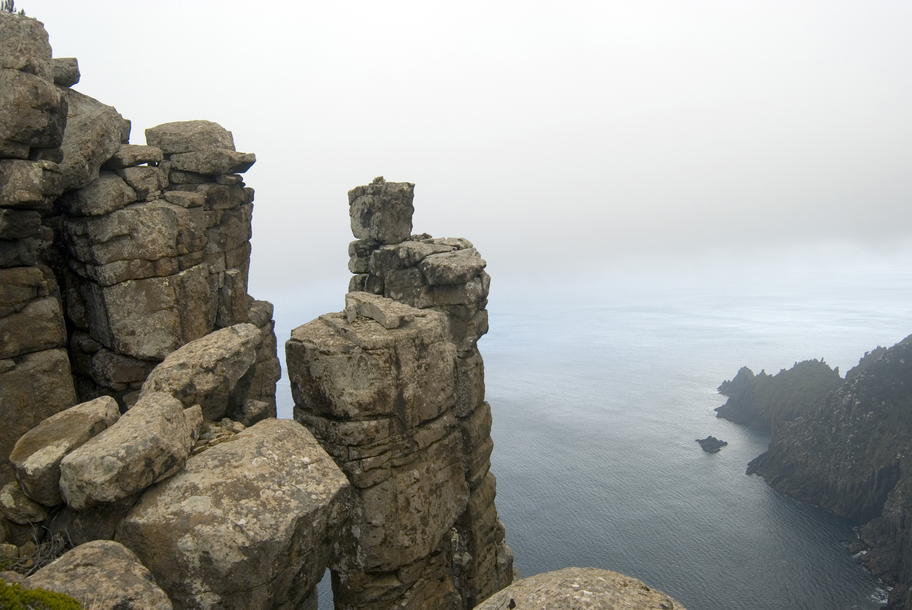 Keywords: tasmania, australia, rock, cliff, stack, formation, eroded, column, geological, dolerite, coastal, coastline, misty, precarious, altitude