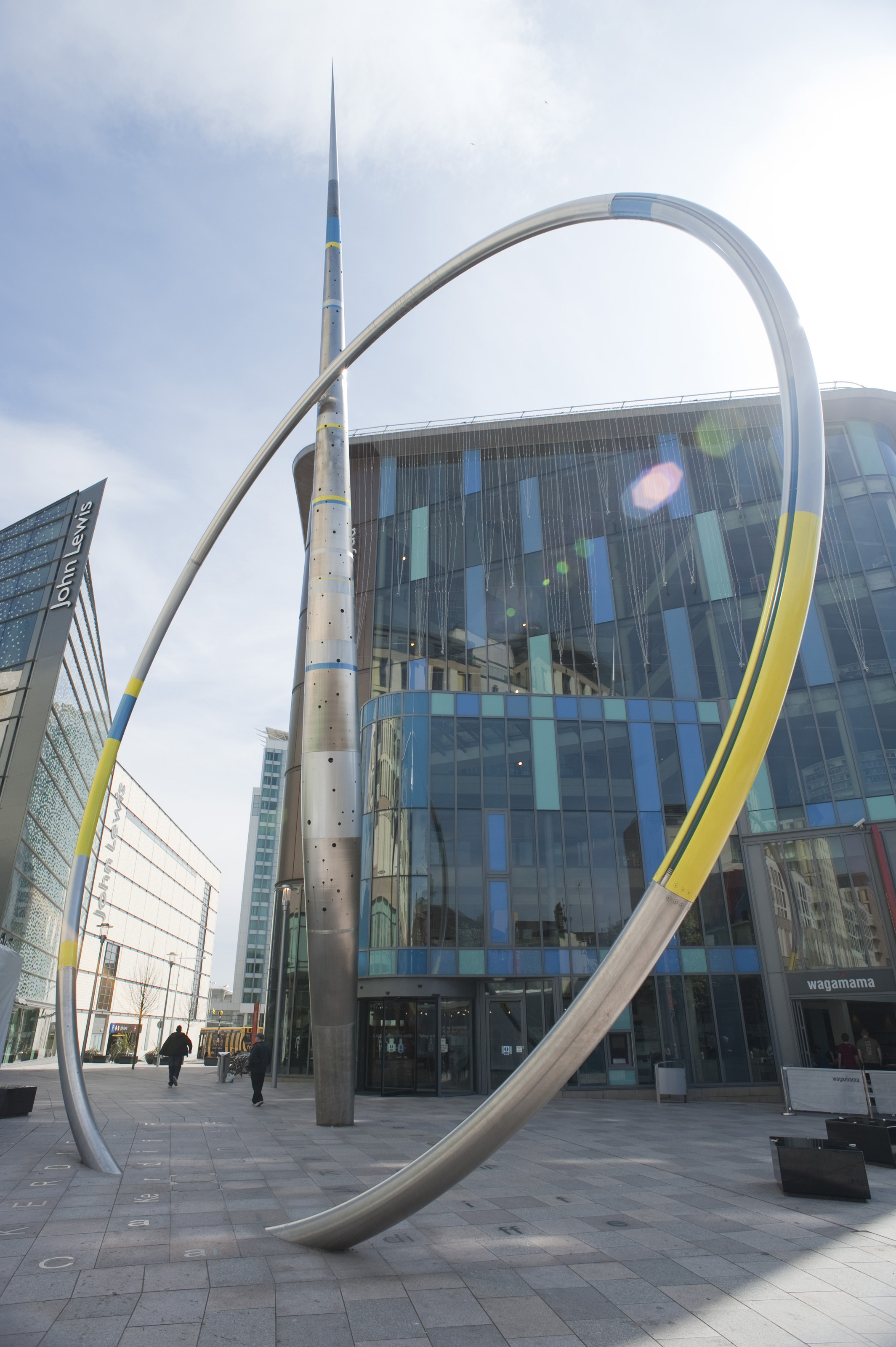 Keywords: alliance sculpture, cardiff, wales, jean-bernard metais, arrow, artwork, contemporary, enamel, hoop, landmark, modern, pointed, sculpture, sightseeing, stainless, steel, structure, travel, urban, welsh
