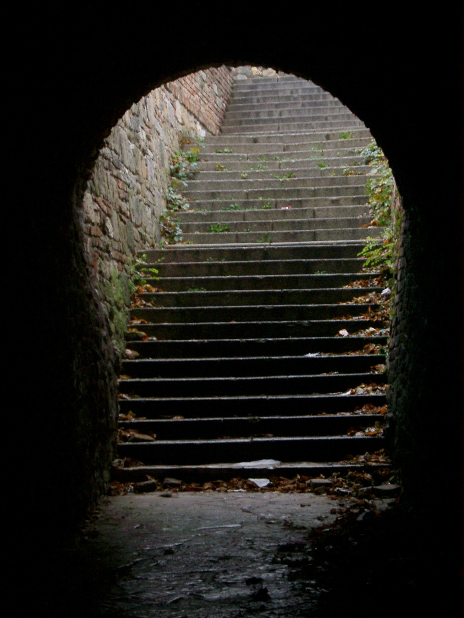 a flight of steps leading through a tunnel, the gate of belgrade castle