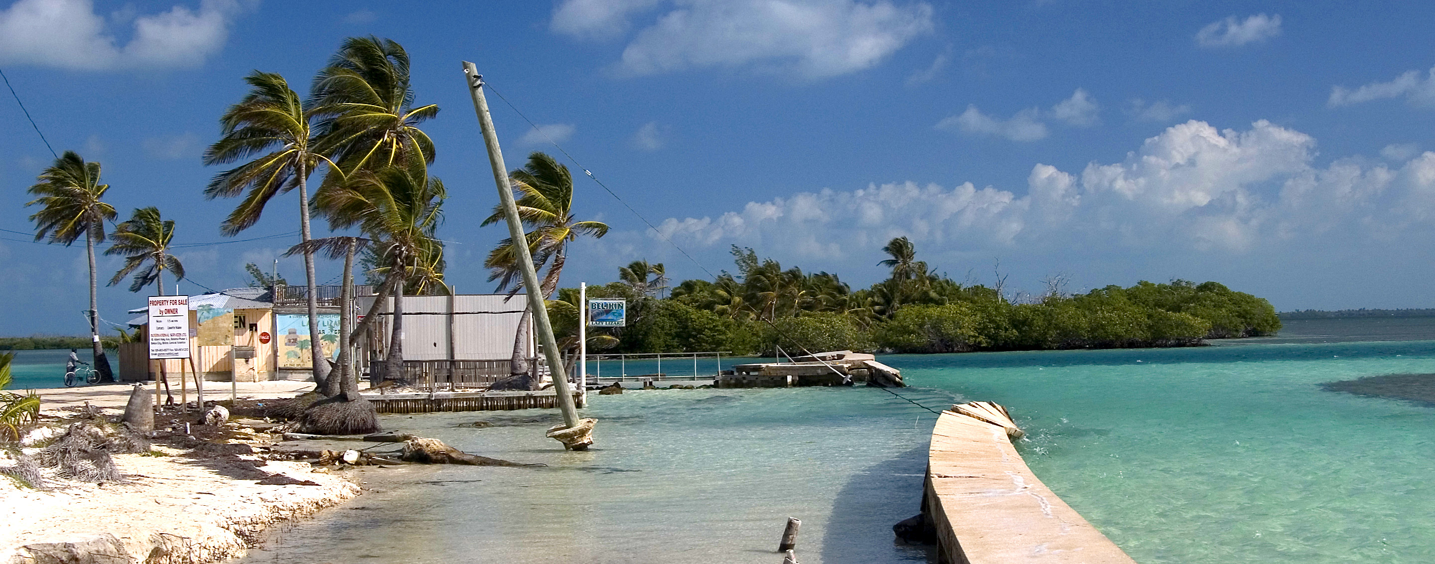 damaged pier at the split, caye caulker