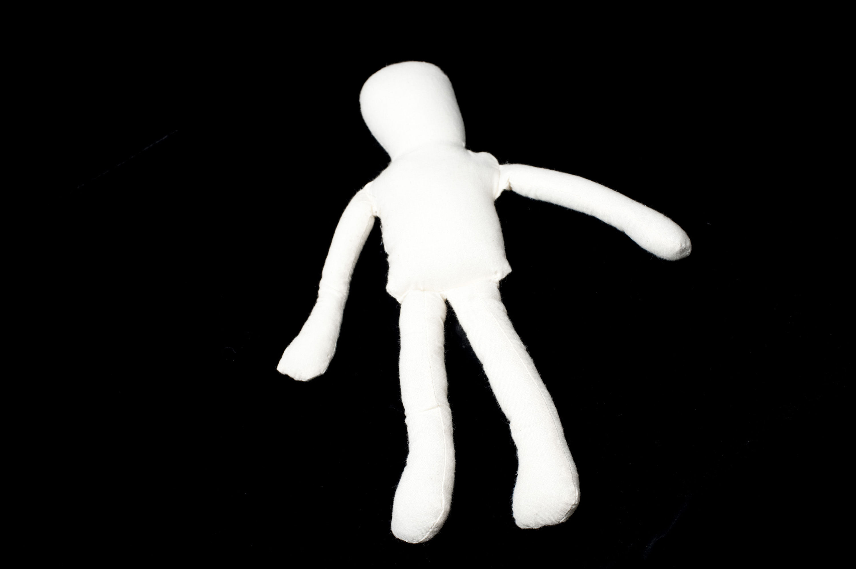 a cloth rag doll on a black background