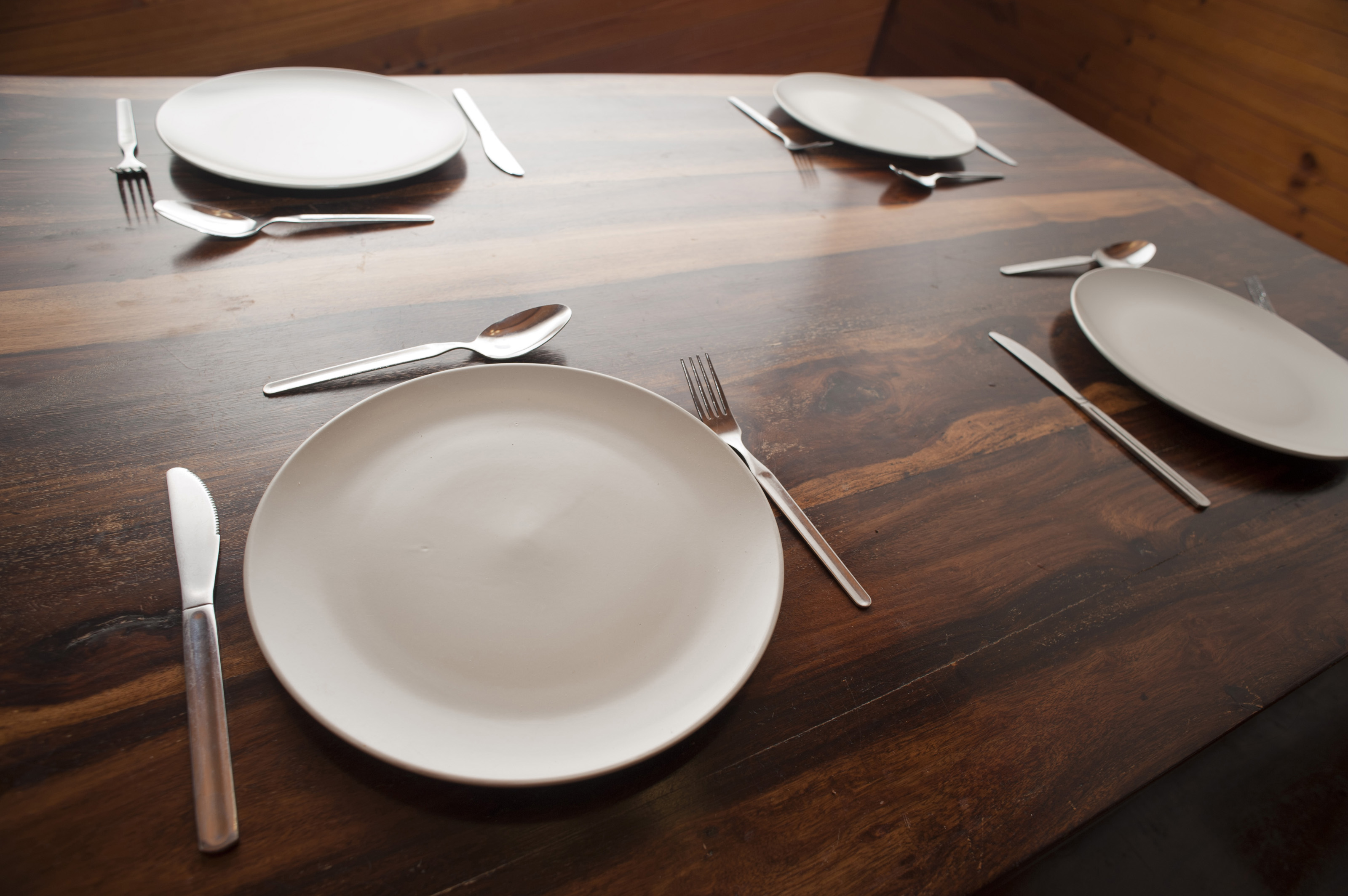 8842 Wooden dining table with four place settings - this image by gratuit is licensed under a Creative Commons Attribution 3.0 Unported License.