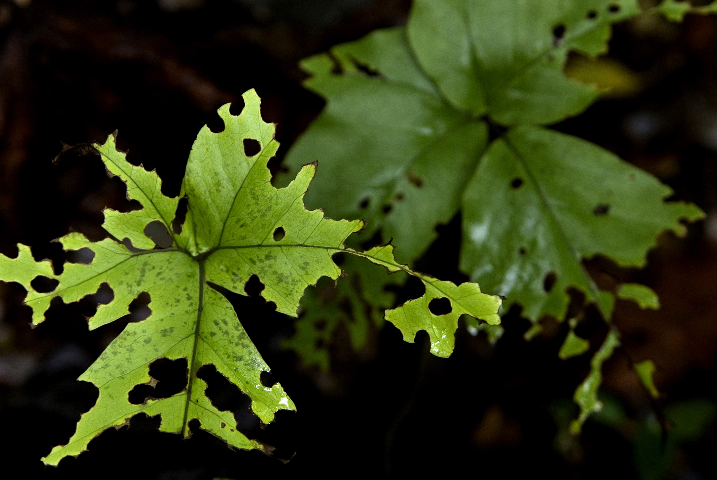 Keywords: rainforest, green, plants, eaten, food, black, chewed, holed