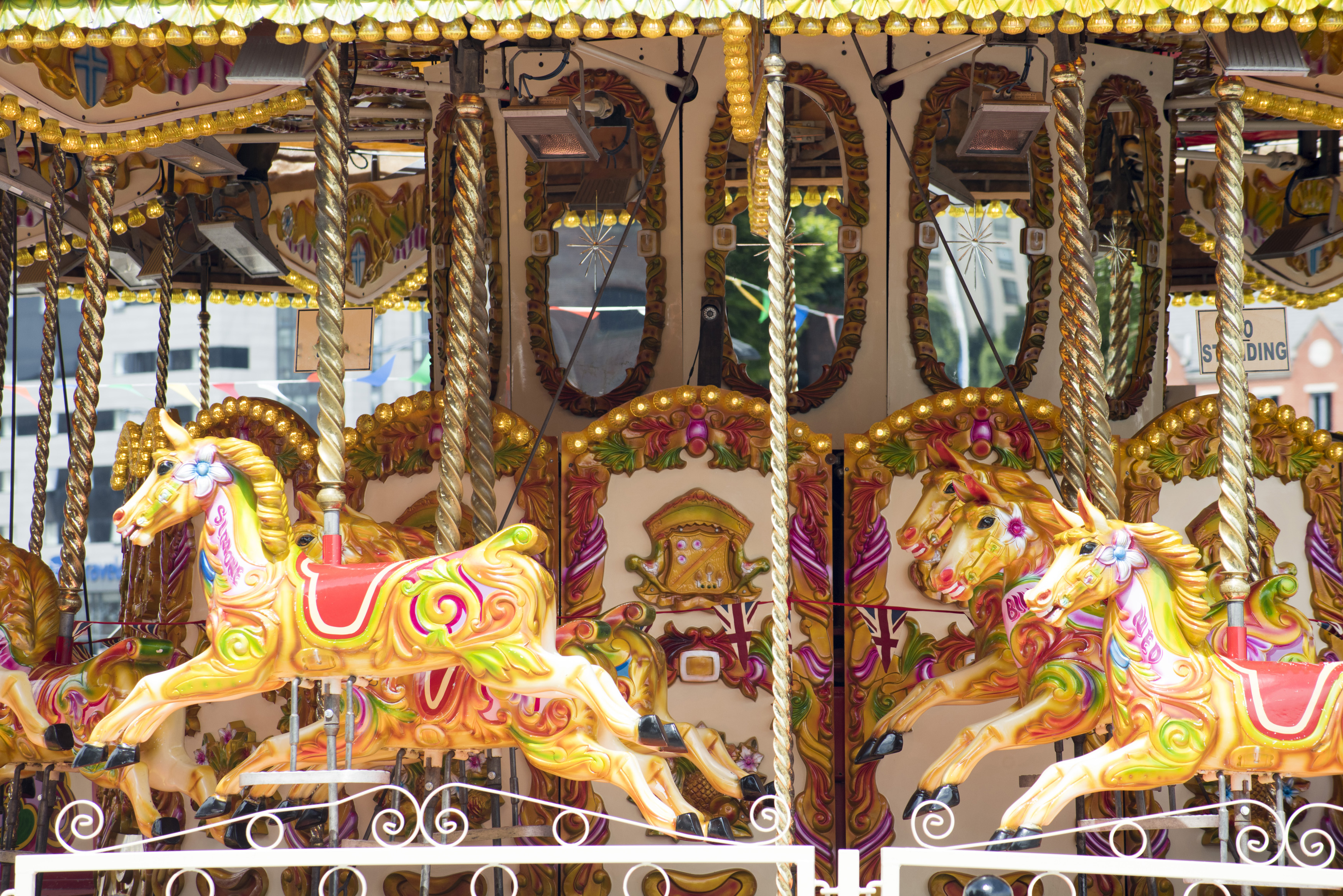 17803 Colourful yellow horses on a fairground carousel - this image by gratuit is licensed under a Creative Commons Attribution 3.0 Unported License.
