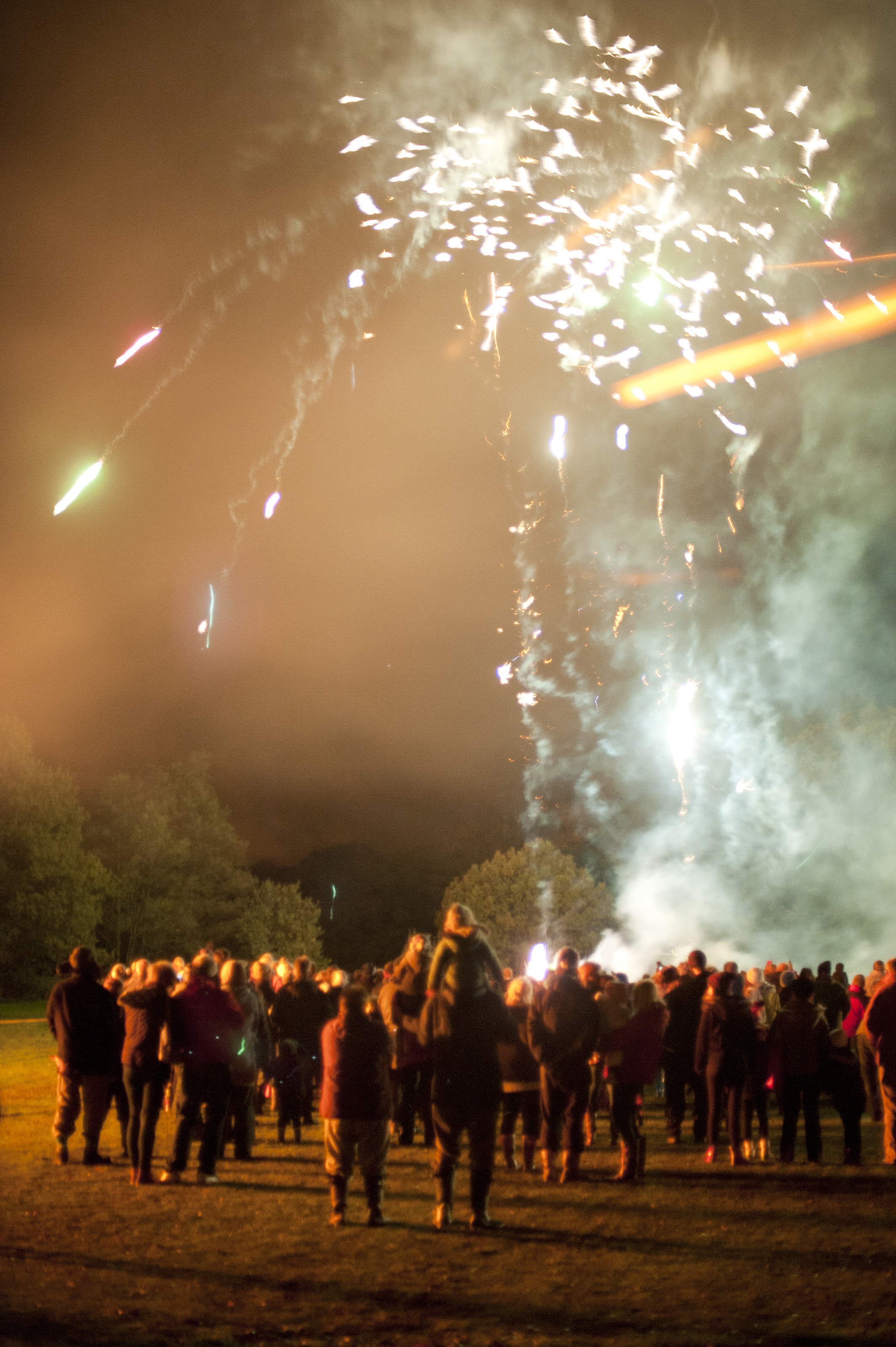 Keywords: bonfire night, celebration, display, fireworks, november 5th, people, burst, crowd, pyrotechnics, rockets, smoke, spectators, festival, guy fawkes, sparks, flare