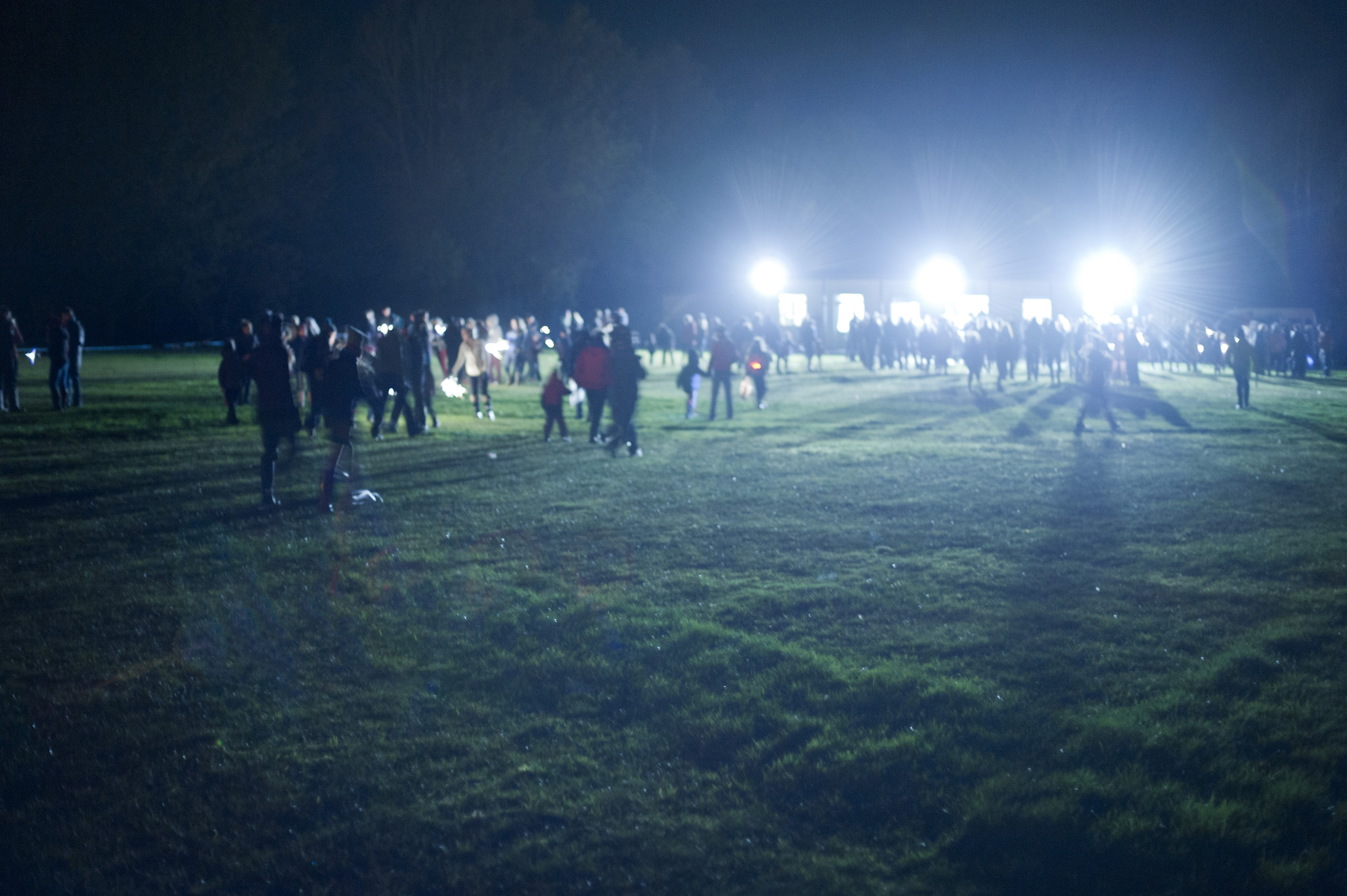 Keywords: bonfire night, celebration, november 5th, crowd, evening, event, festivity, field, floodlights, lighting, people, bright, floodlit, party, guy fawkes, defocus, cold white