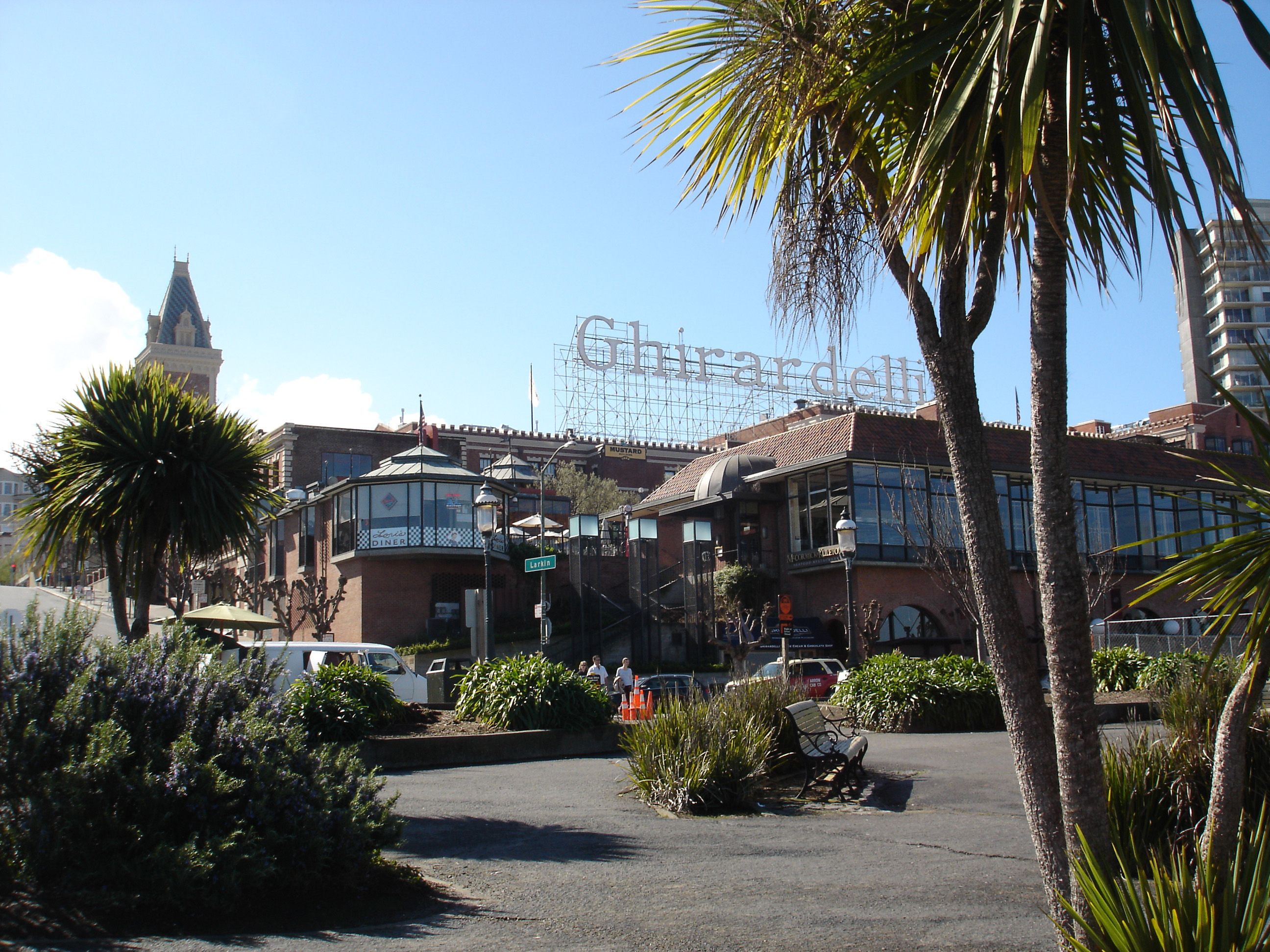 a view of the front of the ghirardelli chocolate factory, san francisco