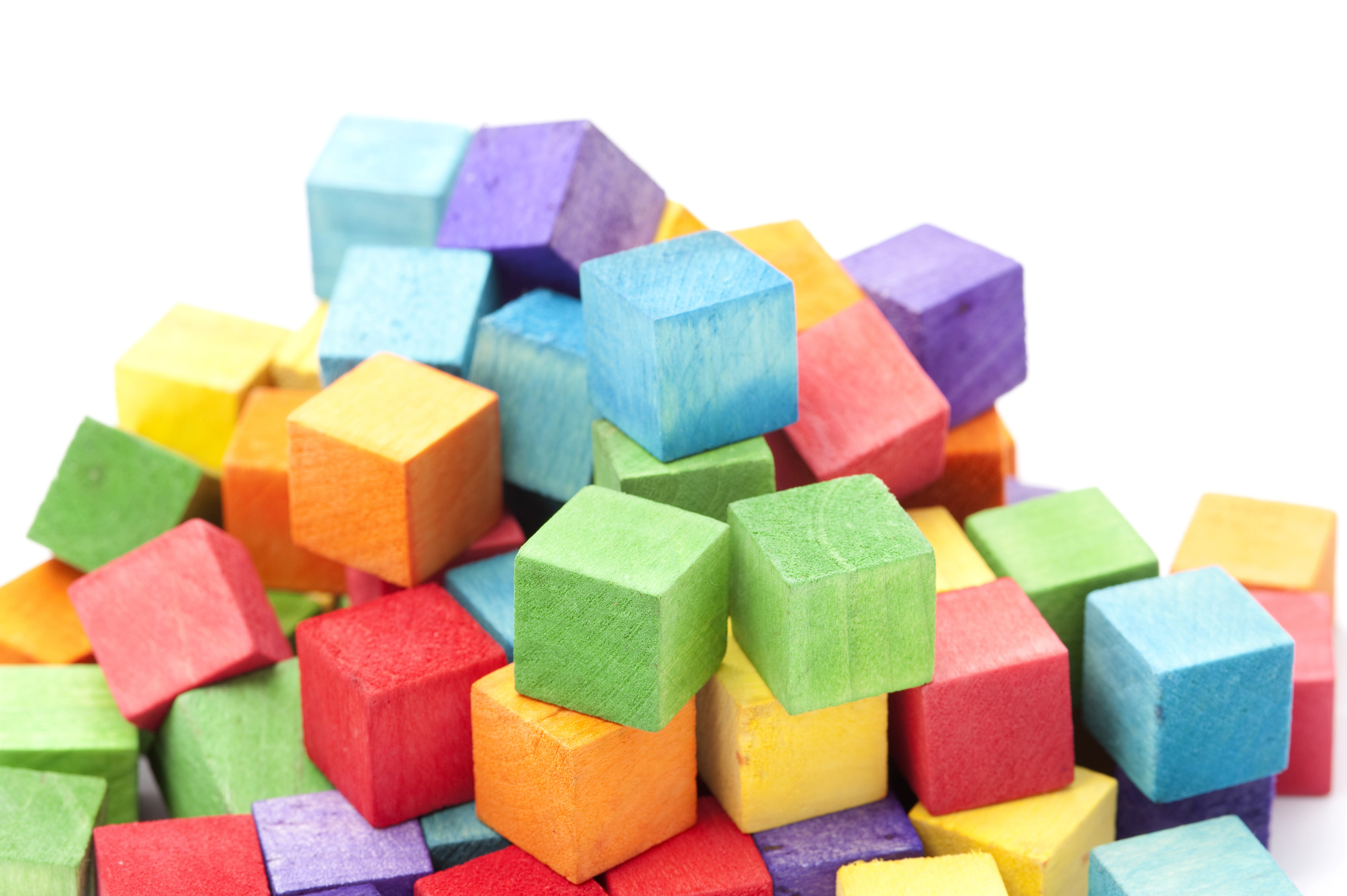 Keywords: blocks, children, colorful, many, pile, stack, toy, white background, wood, wooden, copy space, juvenile, childhood, bricks, variety, imaginiation
