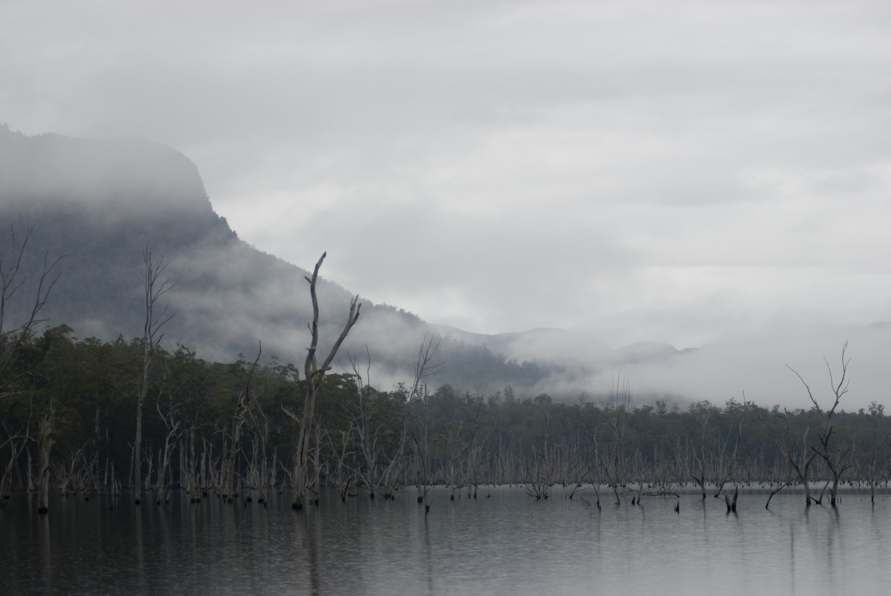 Keywords: landscape, trees, mountain, scenery, morning, dead, weather, mist, australia, submerged, tasmania, lakeshore, hydroelectricity, dammed, lake rowallan