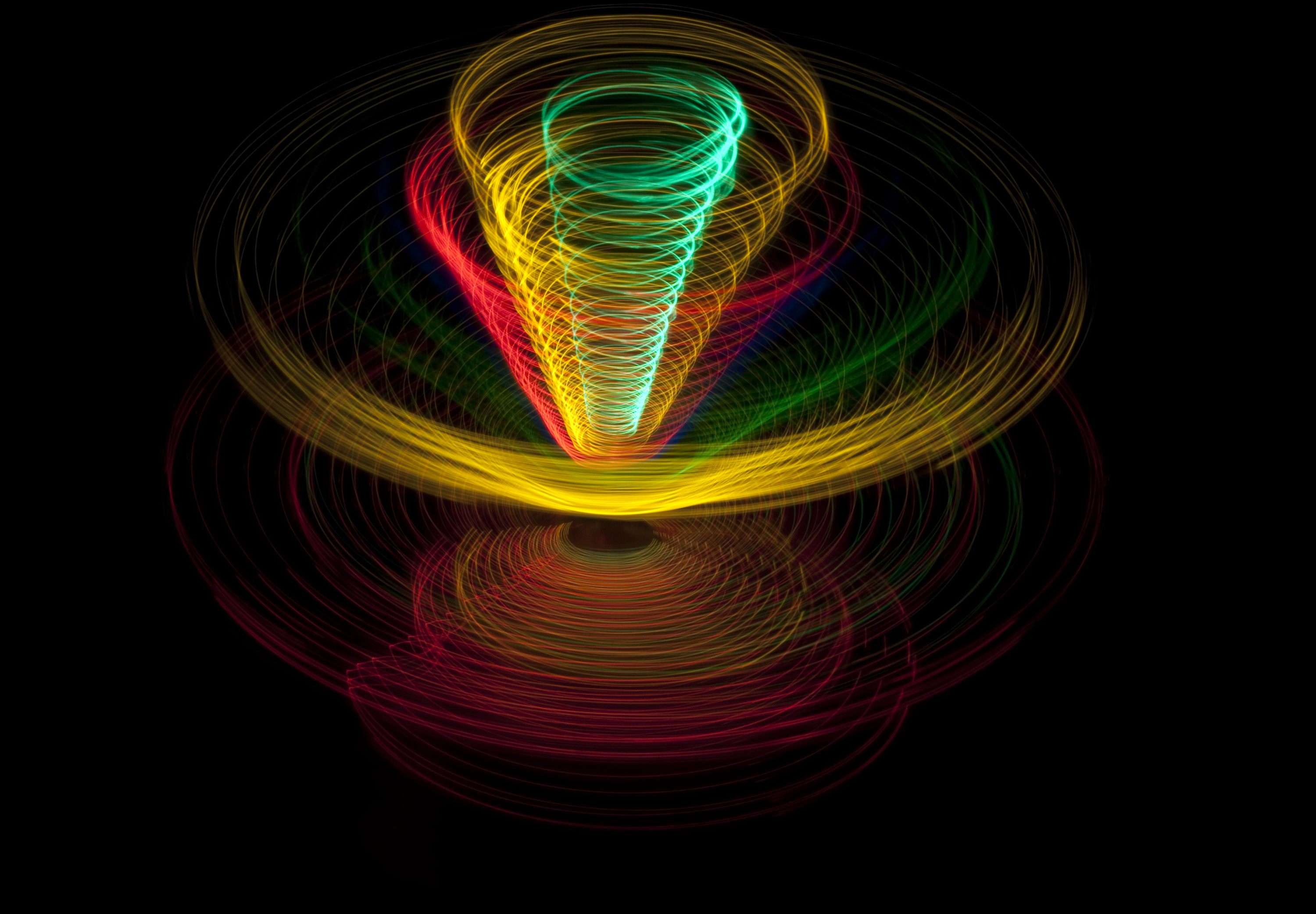 Keywords: light, pattern, circles, trails, trace, circle, colour, color, coloruful, multi-colored, multicoloured, bright, saturated, glowing, abstract, unusual, eye catching, elipse, cone, conical