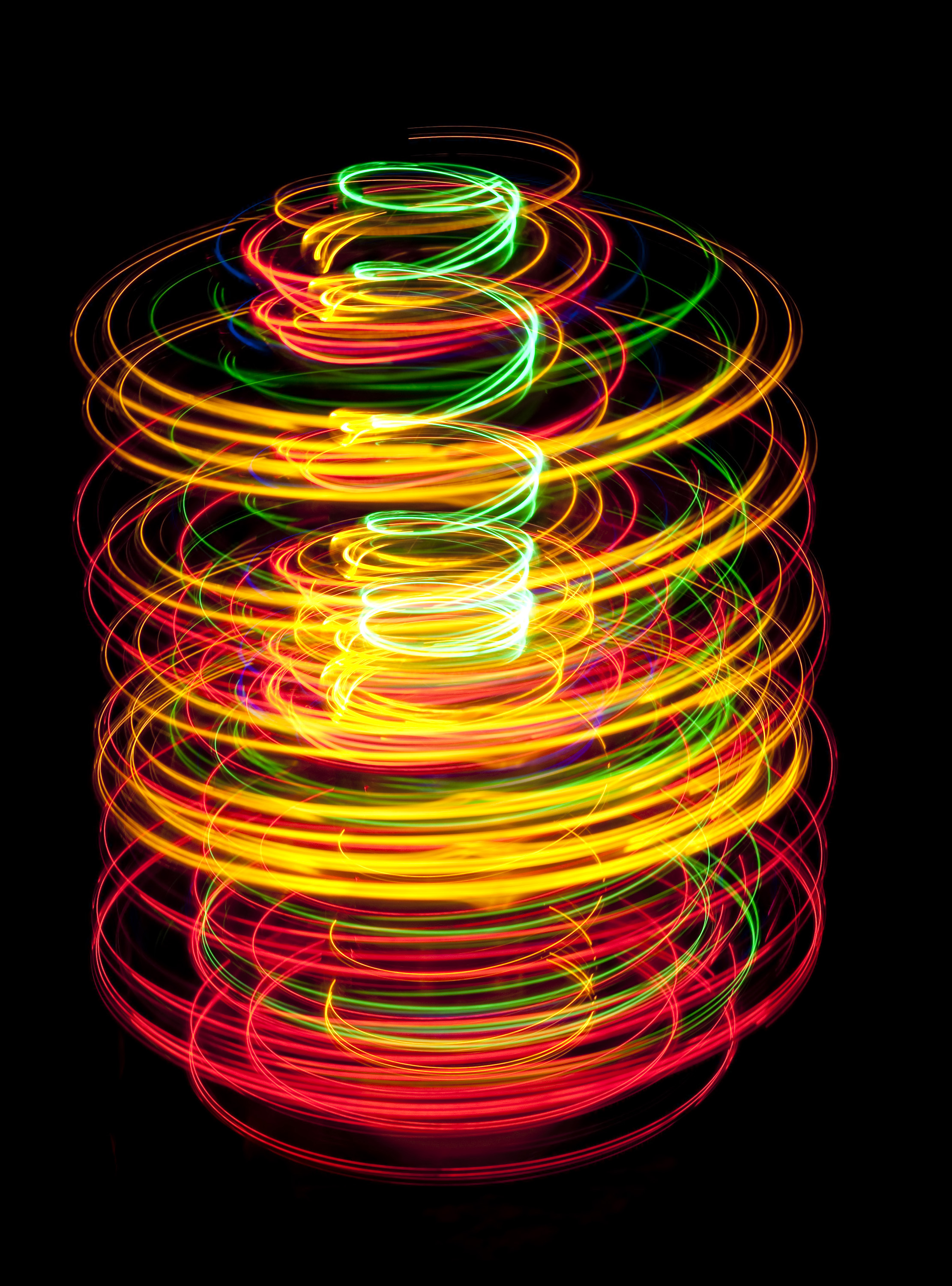 Keywords: light, pattern, circles, trails, trace, circle, colour, color, coloruful, multi-colored, multicoloured, bright, saturated, glowing, abstract, unusual, eye catching, corkscrew, helix, helical, helicoid