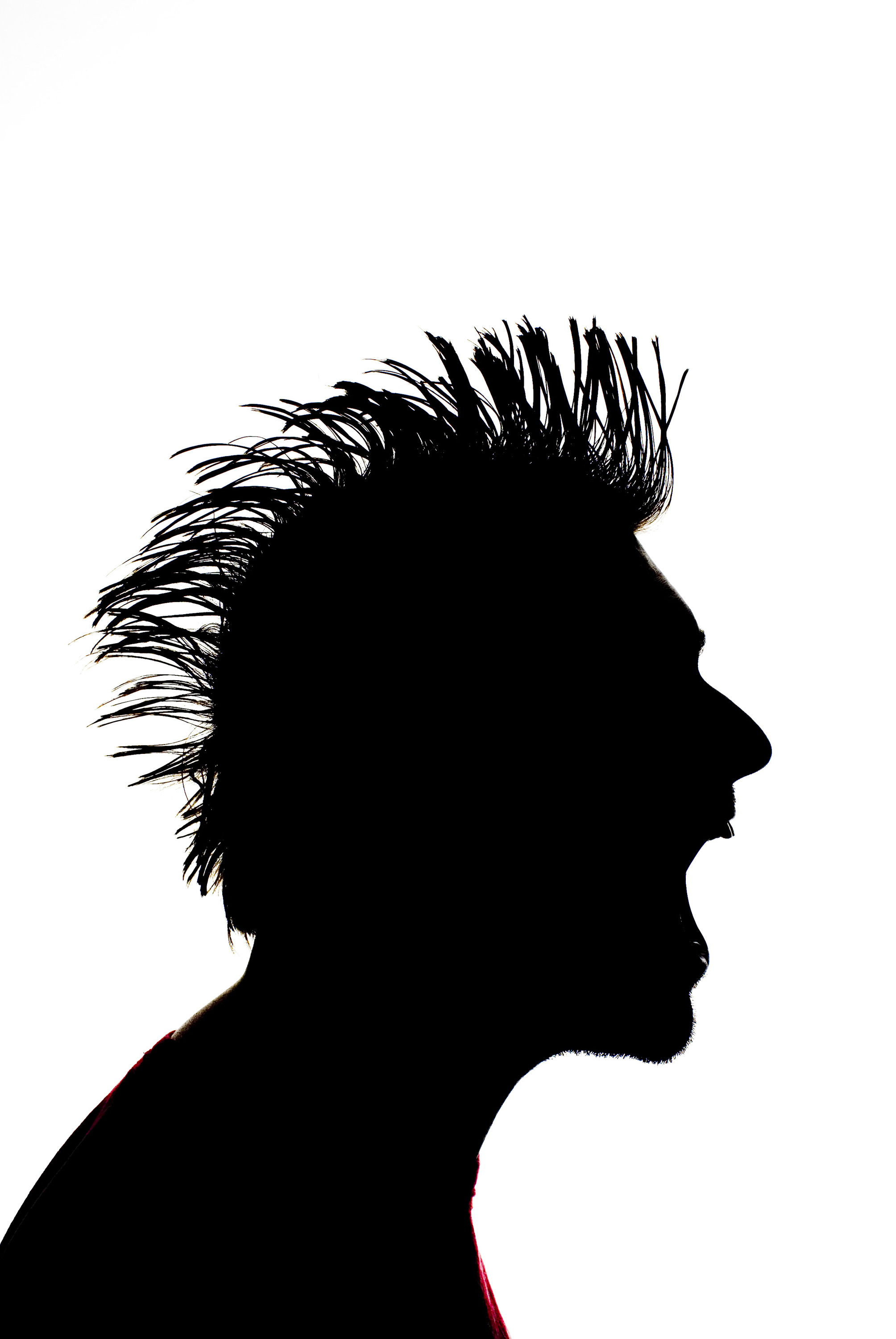 Keywords: man, silhouette, person, mohawk, punk rocker, punk, male, scream, shut, angry, mad, shouting, annoyed