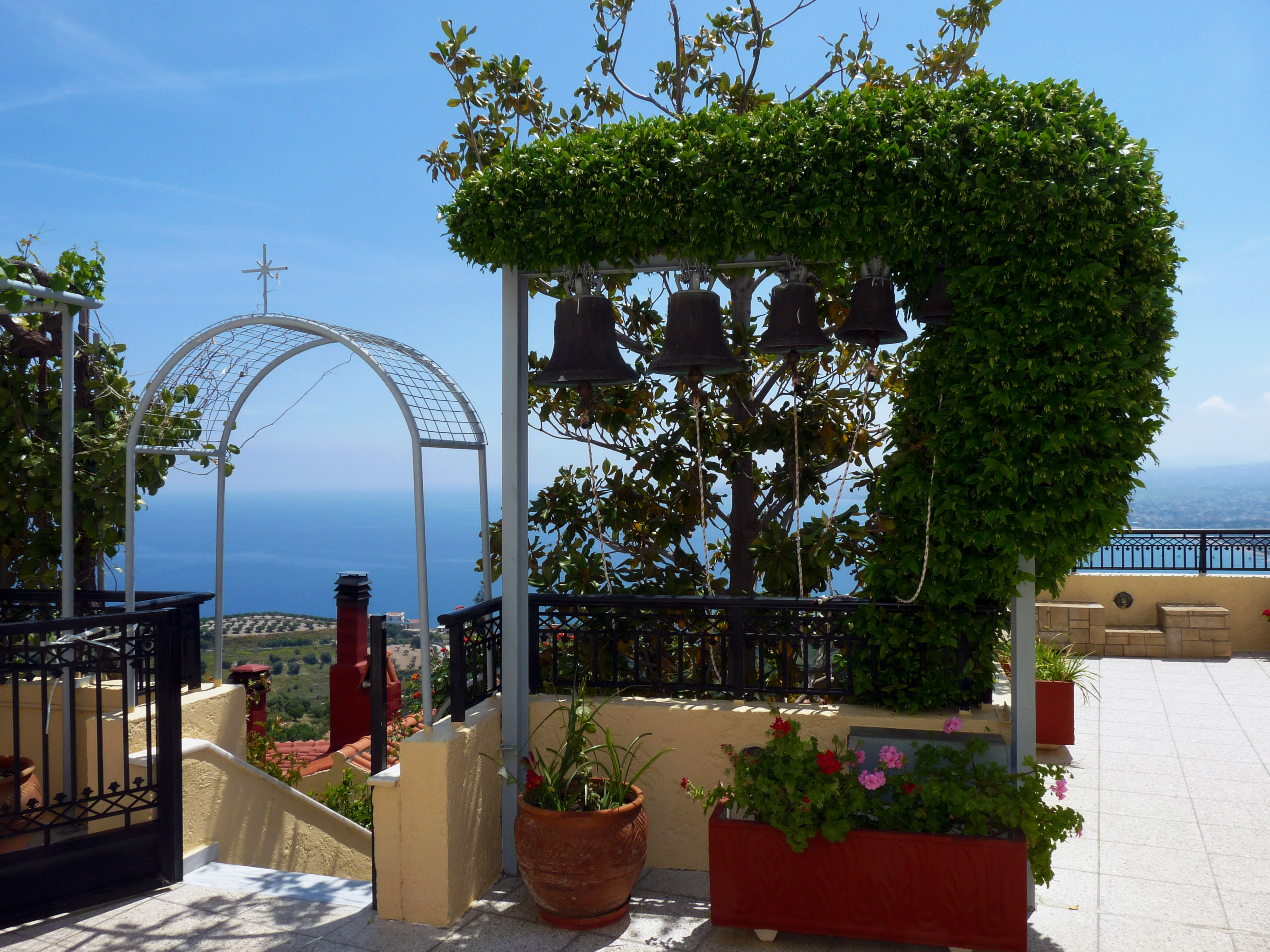 Keywords: bells, monastery, sea, sky, heaven, flower, high, mountain top, abbey, church, heaven, earth, life, zeus, nature, travel, religion, peace, silence, top of the world, view, landscape, close up, crete island, greece, church bell, music, universe