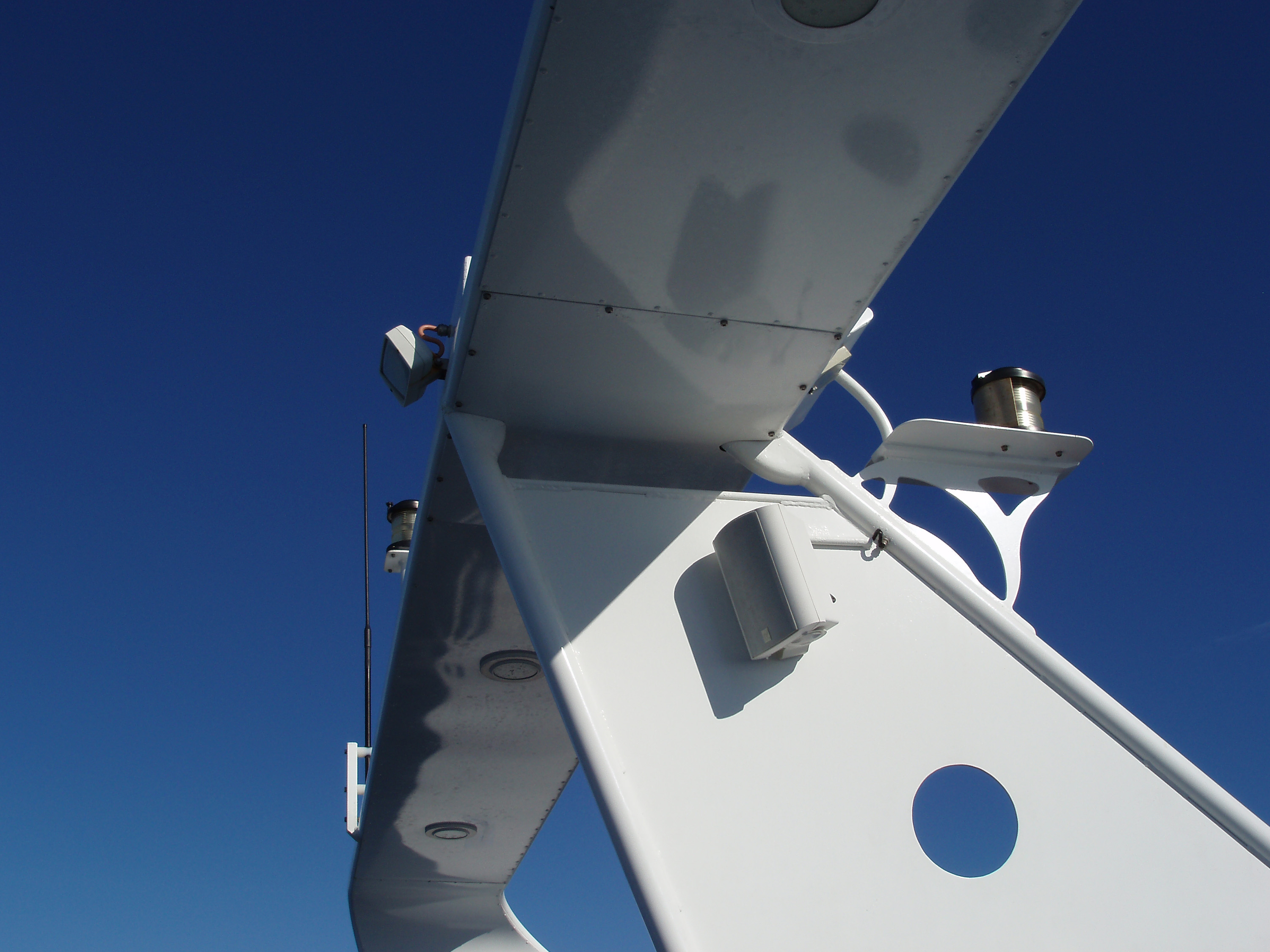 details of the top of a fly deck on a motor yacht