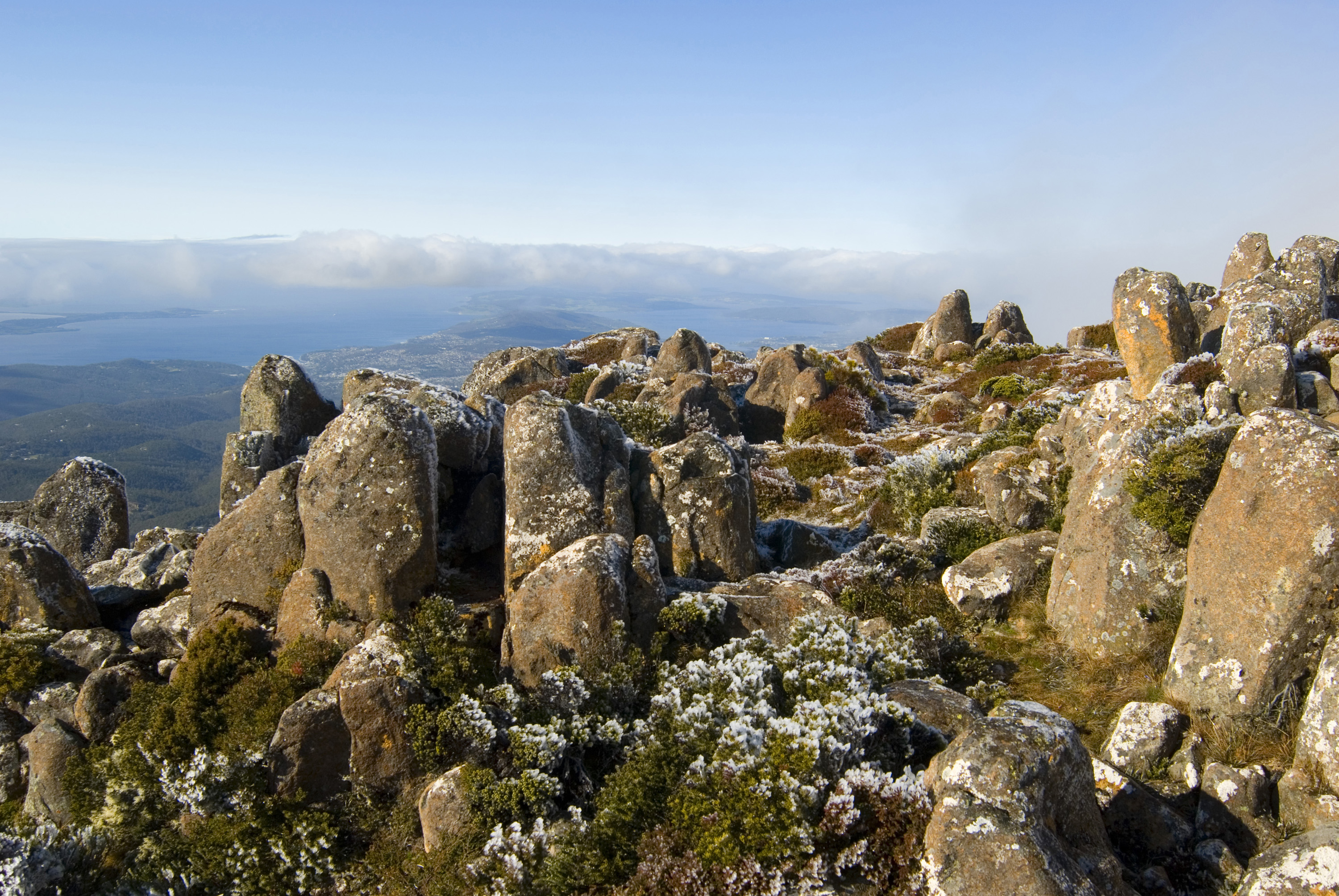 Keywords: tasmania, australia, landscape, winter, cold, rocks, plants, summit, frost, boulders, mountain, mount wellington, weather, formations, topography