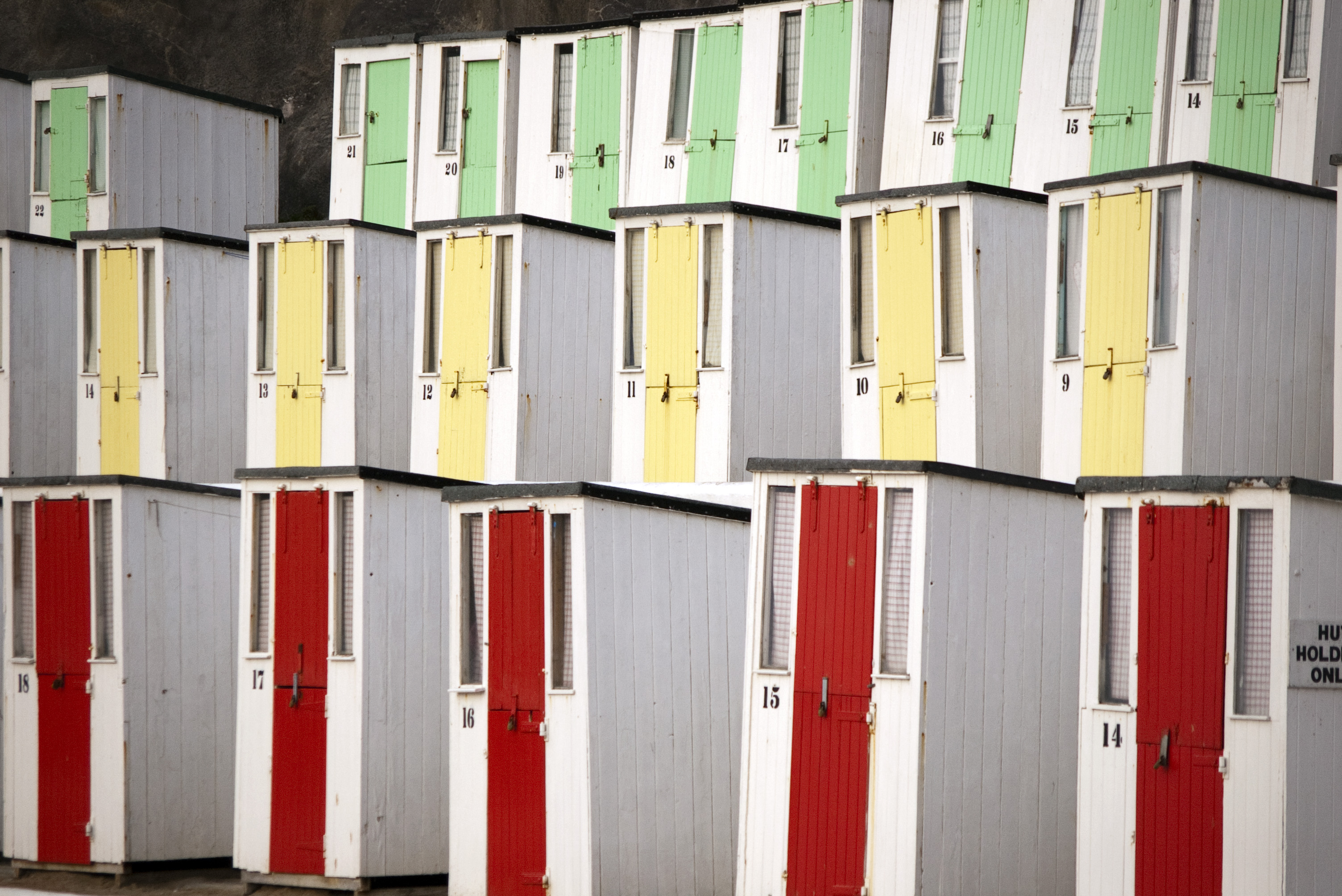 Keywords: cornwall, cornish, Beach Huts, Tolcarne Beach, lines, tiered, rows, colourful, summer