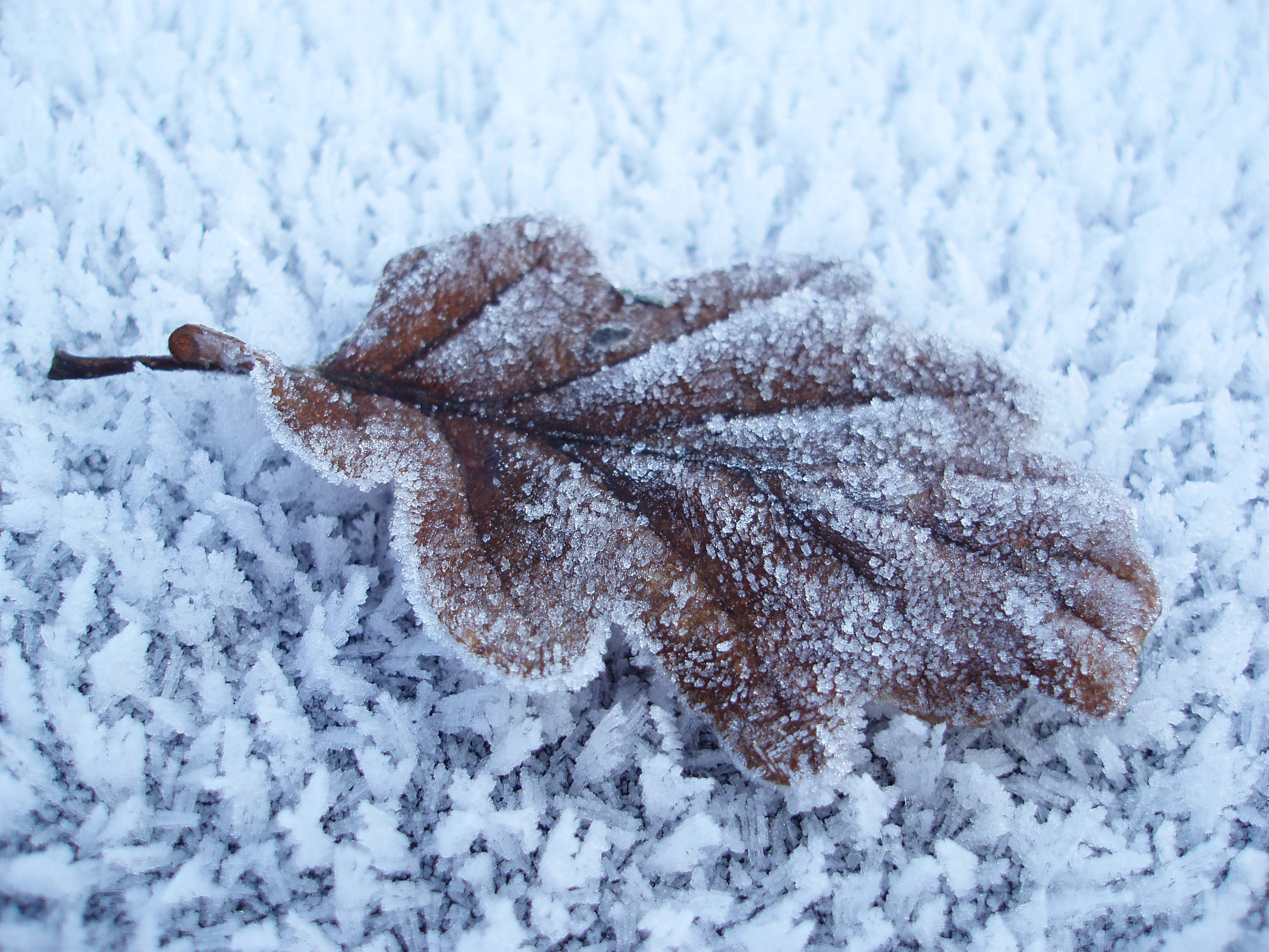 Keywords: cold, winter, frost, cold, ice, icy, frozen, oak leaf, leaf, brown, crispy, crisp