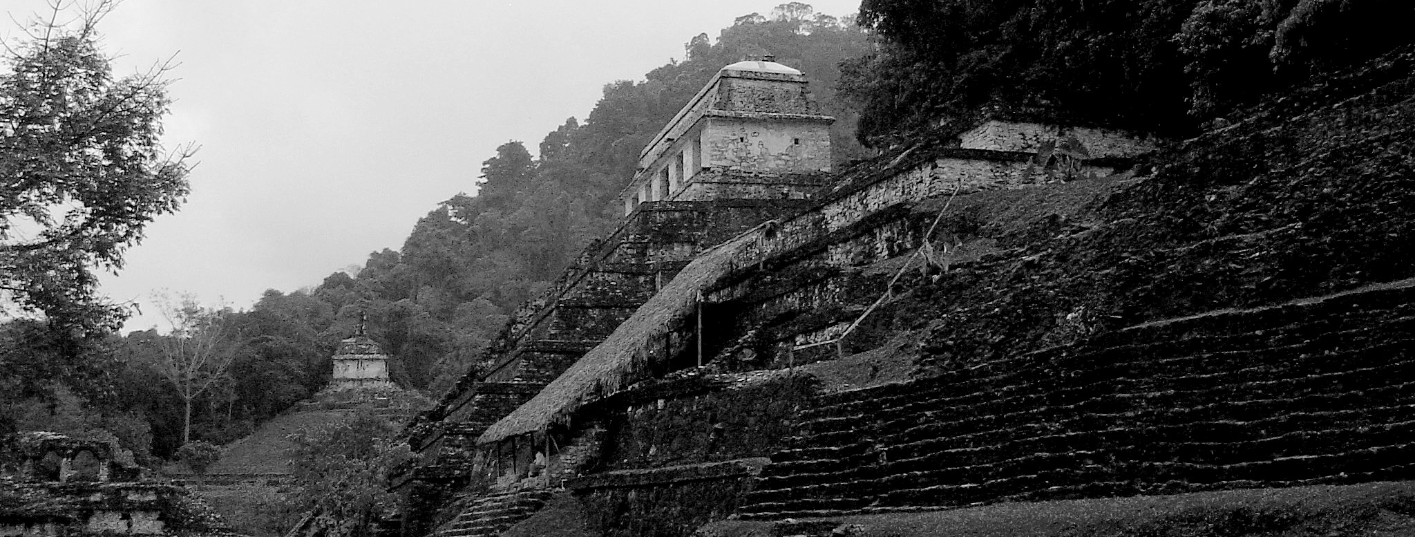 Keywords: mexico, yucatan, chiapas, palenque, Temple of the Inscriptions, black and white, panoramic, pyramids, piramyds