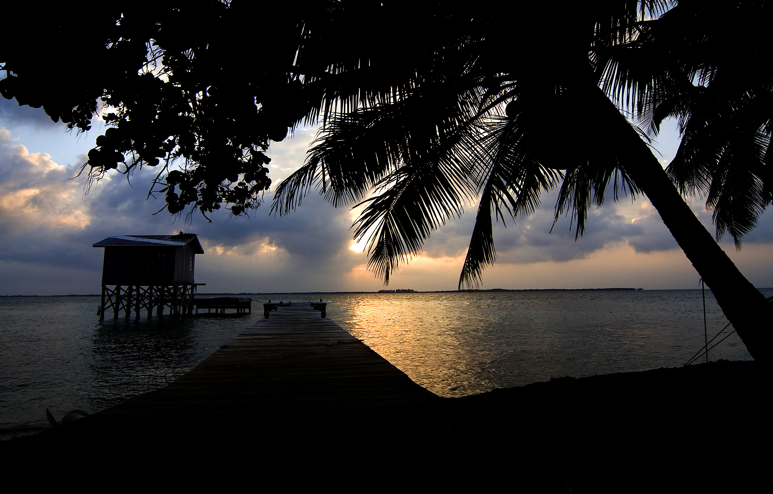 Keywords: belize, tropical, central america, caribbean, tobacco cay, sunrise, pier, jetty, water, sun, sky, troipical, island