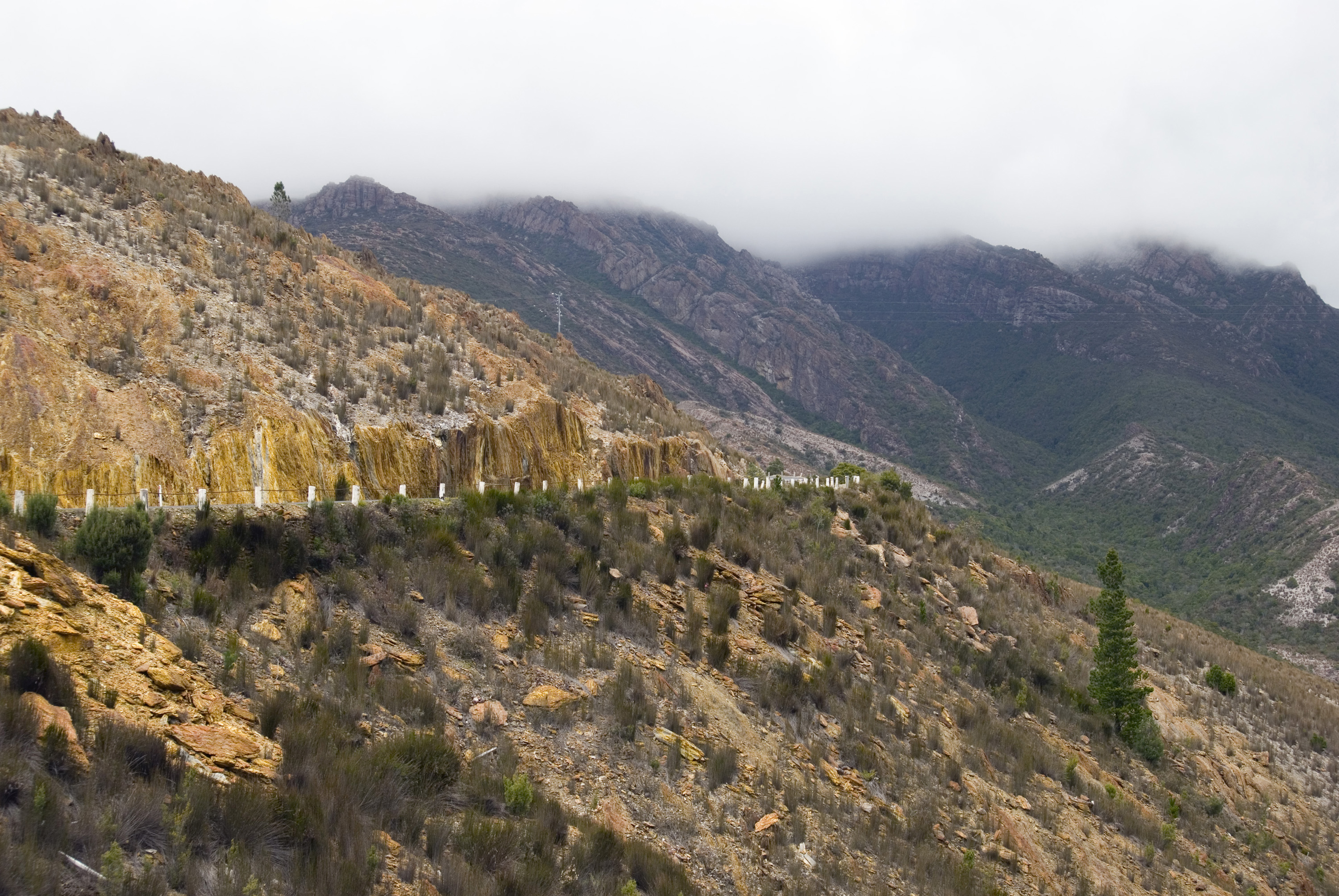 Keywords: landscape, road, mining, industry, excavation, terrain, australia, hills, tasmania, rehabilitation, manmade, spoil, heaps, reclaimed, mine workings