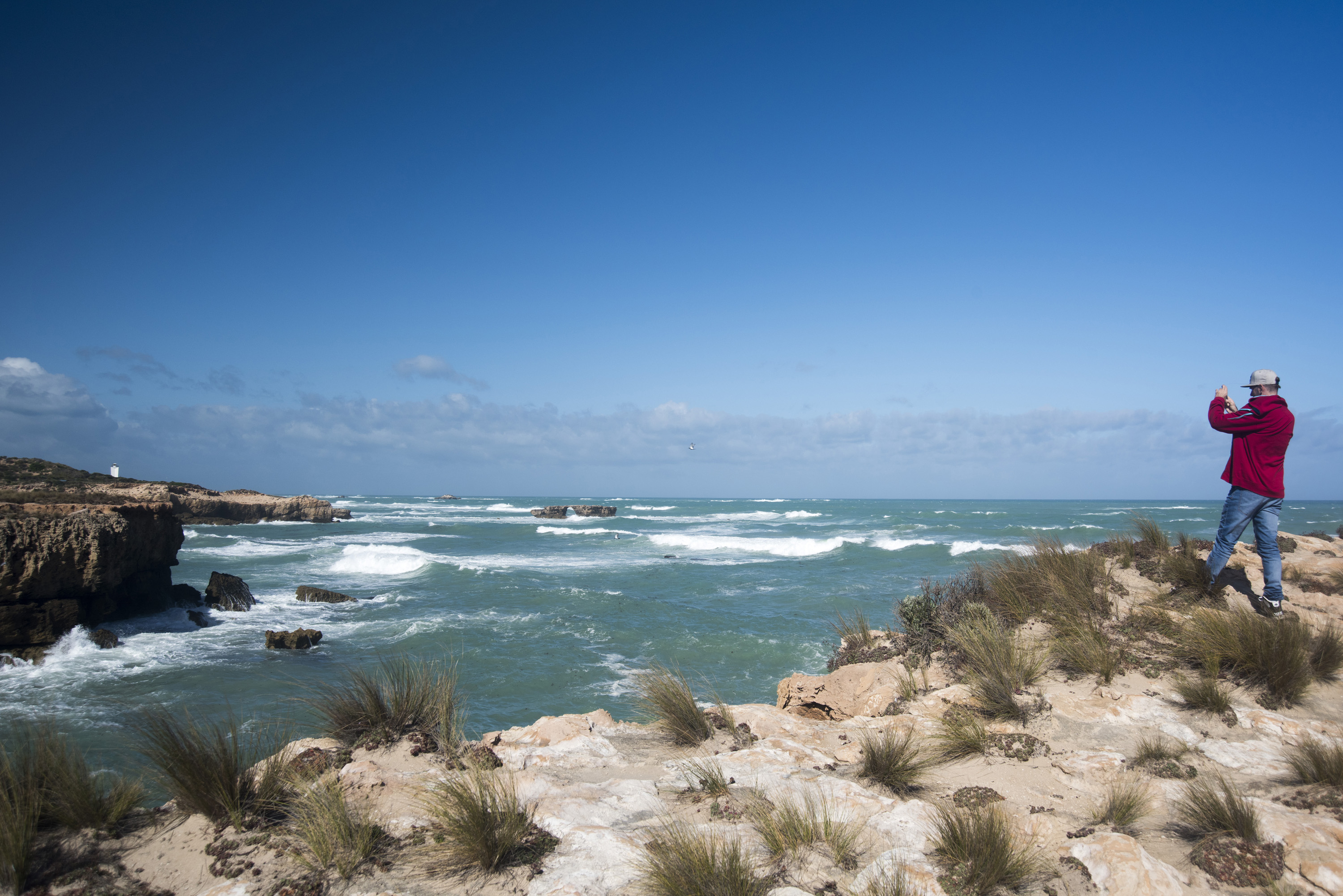 17008 Man photographing the coastline at Robe - this image by aussiestock is licensed under a Creative Commons Attribution 3.0 Unported License.