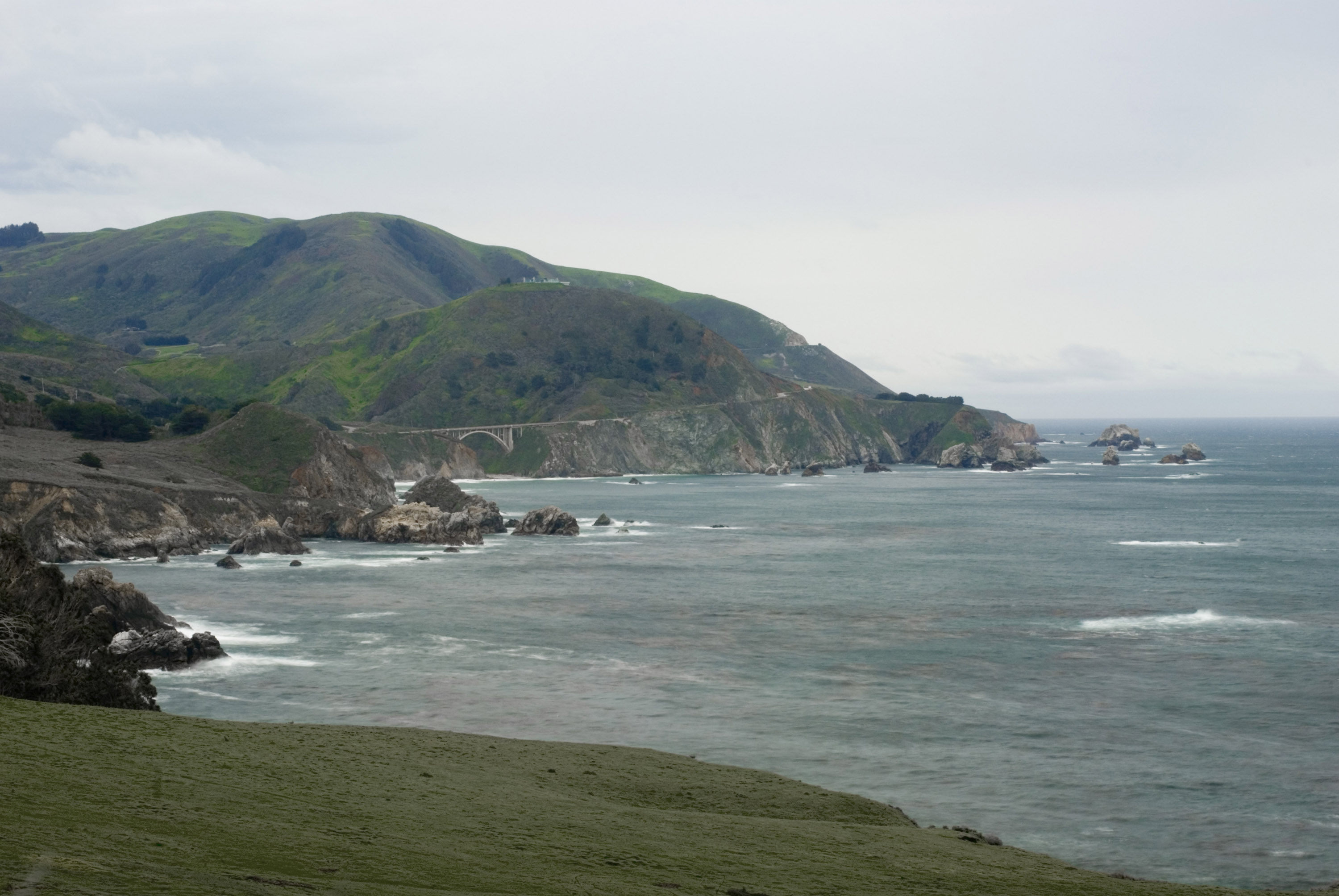 Keywords: ocean, sea scape, landscape, water, cliffs, highway 1, california, drive, route 1, natural, nature, surf, big sur, panoramic, wide angle, land, rocky creek, bridge, arch