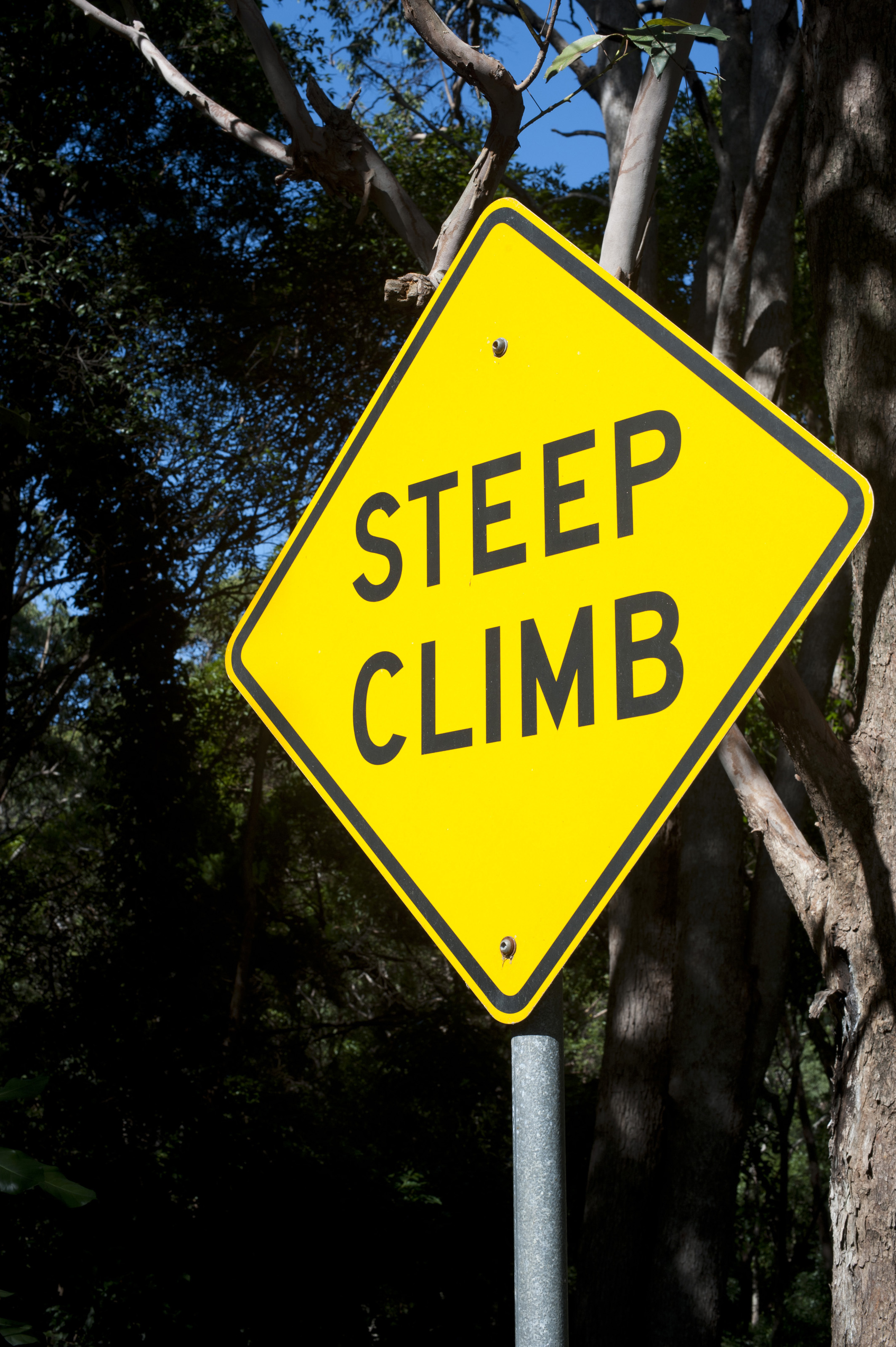 10769 Yellow Steep Climb Sign with Metal Bar Stand - this image by freebie.photography is licensed under a Creative Commons Attribution 3.0 Unported License.