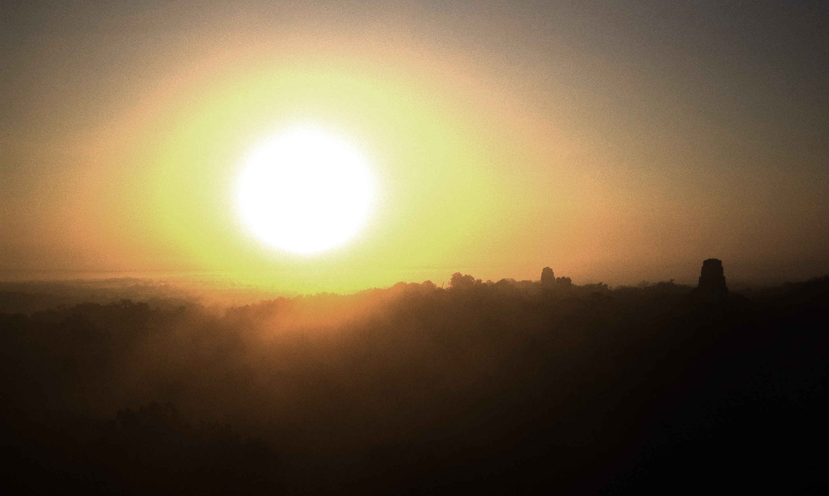 1709-sun over tikal temples - this image by traveltopia is licensed under a Creative Commons Attribution 3.0 Unported License.