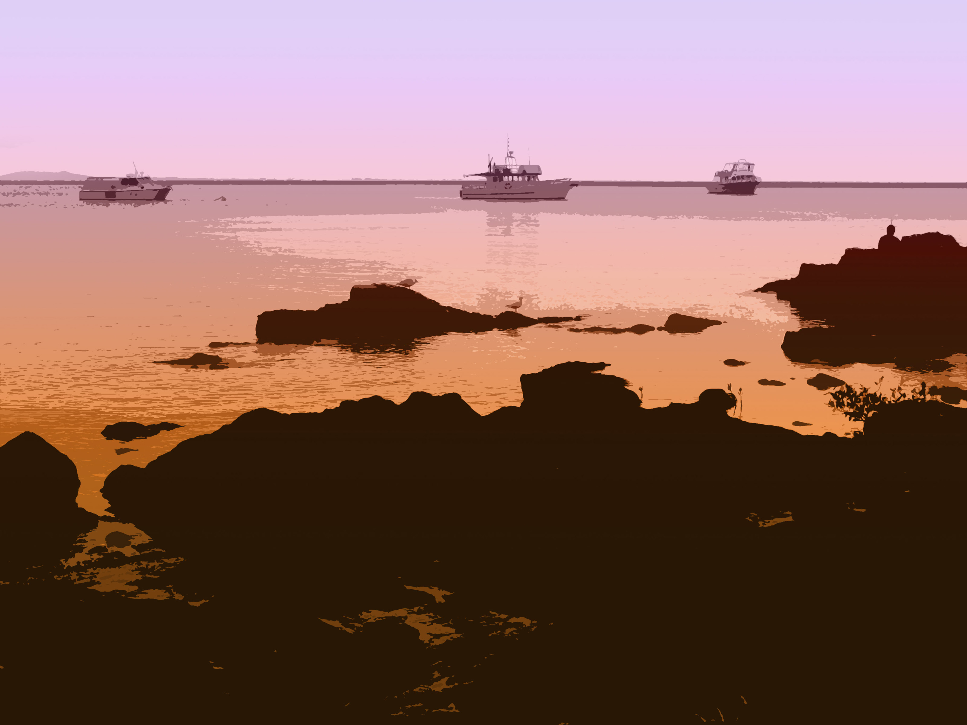 Keywords: graphic, cutout, traced, illustrated, browsn, pink, orange, tropical, tropics, watercraft, boat, ship, drawn, illustration, graphic, background