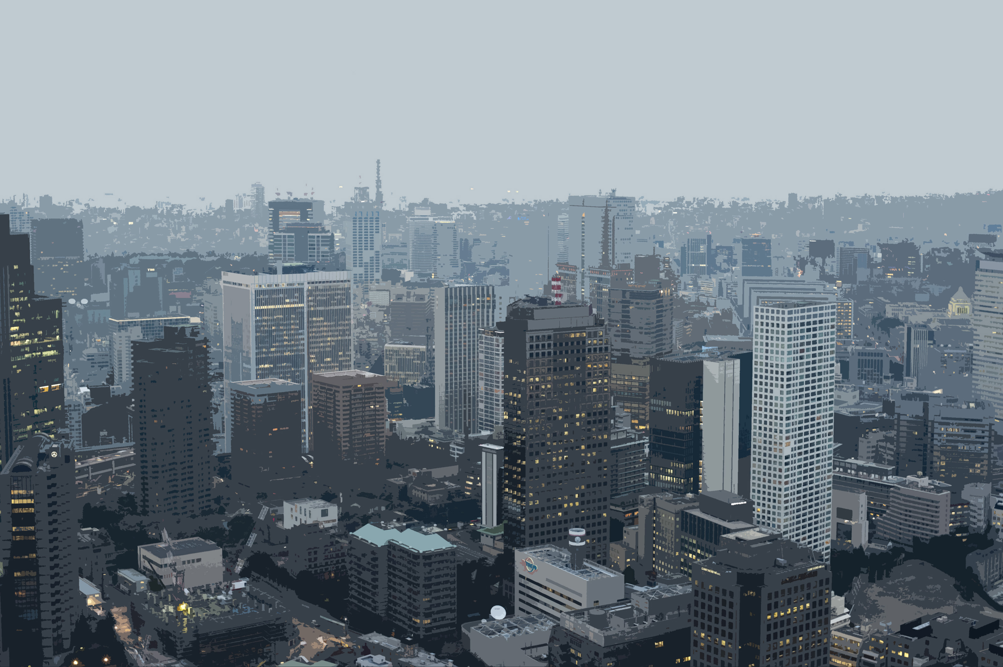 graphic representation of tall urban buildings stetching to the horizon