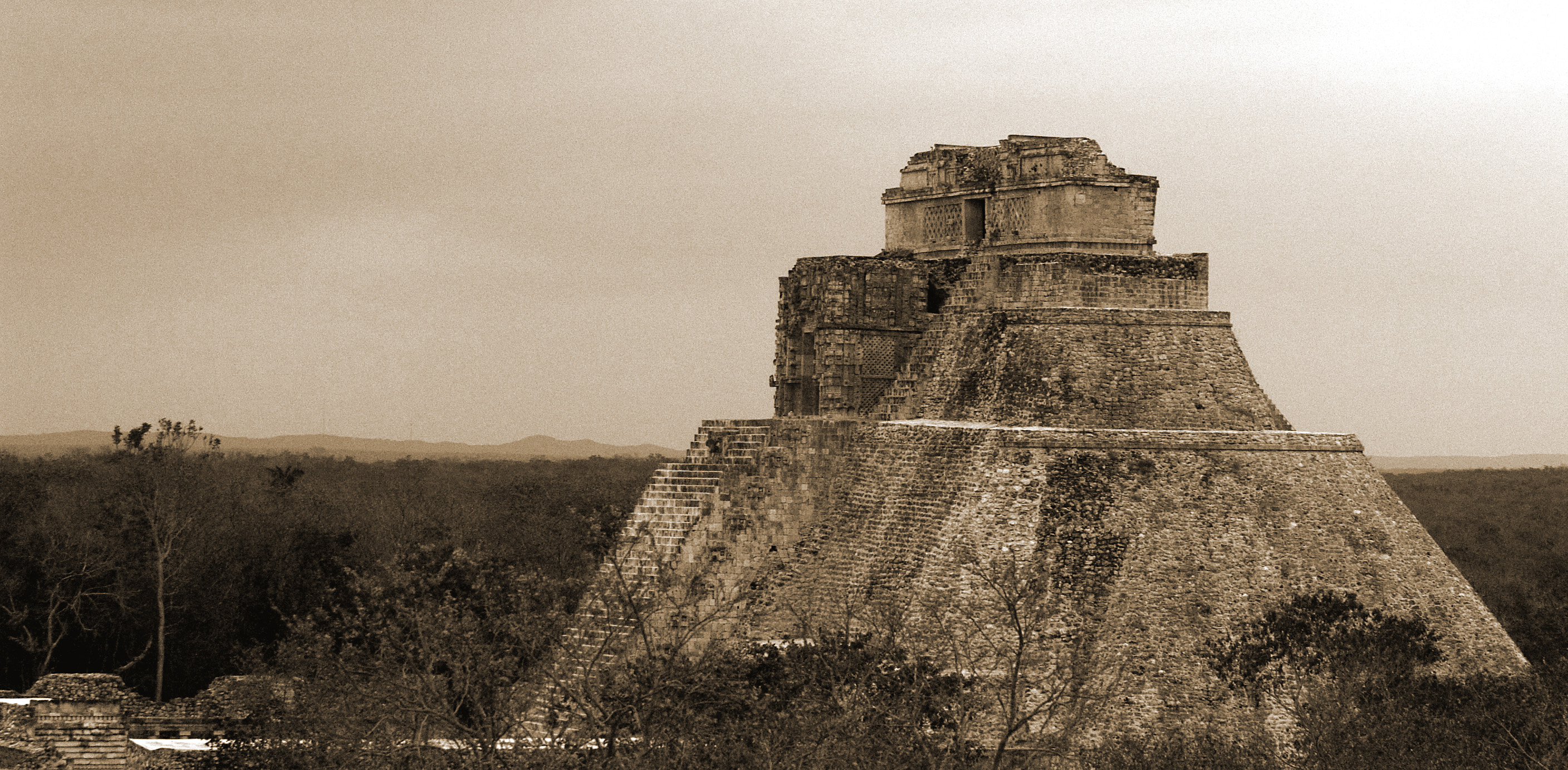 sepia toned: the temple of the magician, Uxmal, Yucat