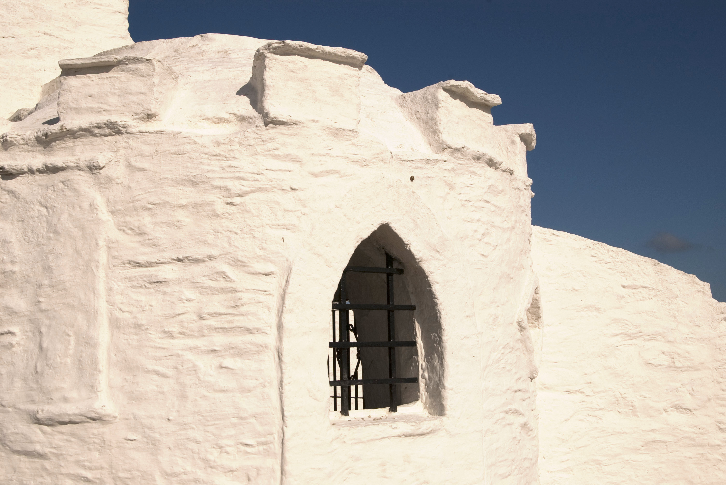 details of a white painted folly on a headland on the cornish coast