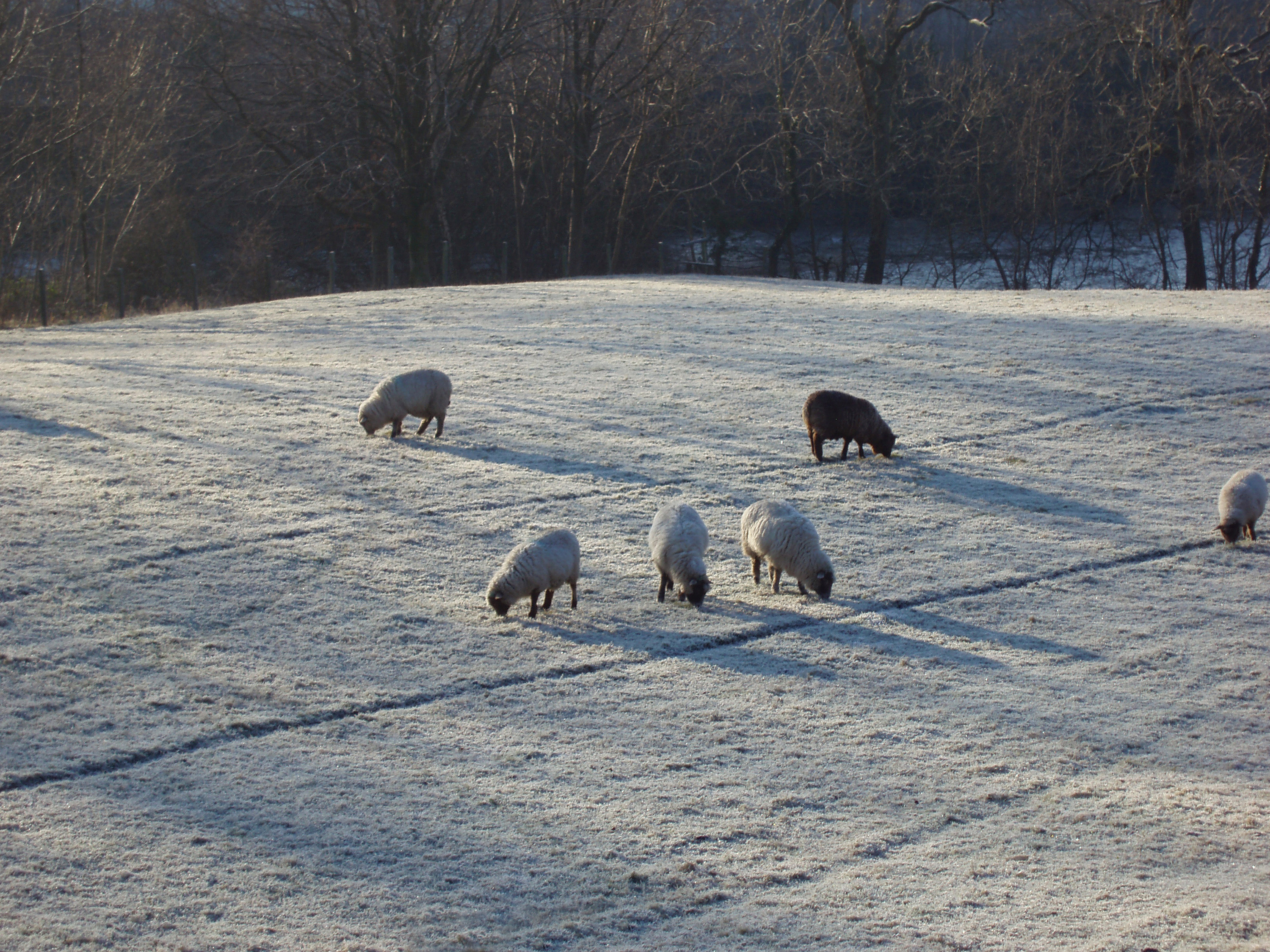 Keywords: sheel, pasture, animal, graze, grazing, cold, winter, frost, cold, ice, icy, frozen
