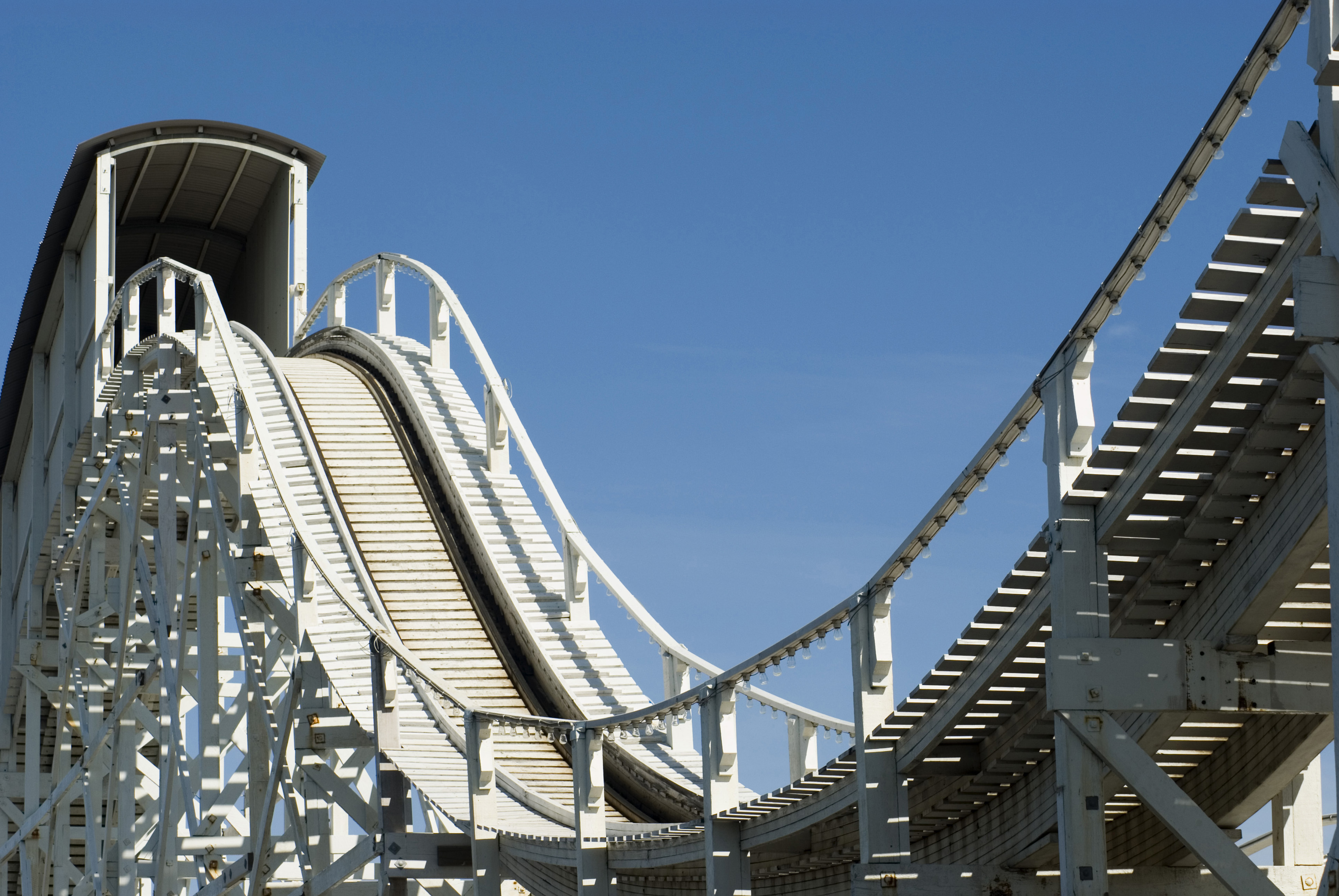Keywords: amusement, fair, fairground, funfair, park, entertainment, big dipper, ride, rollercoaster, track, incline, steep, tunnel, speed, valley