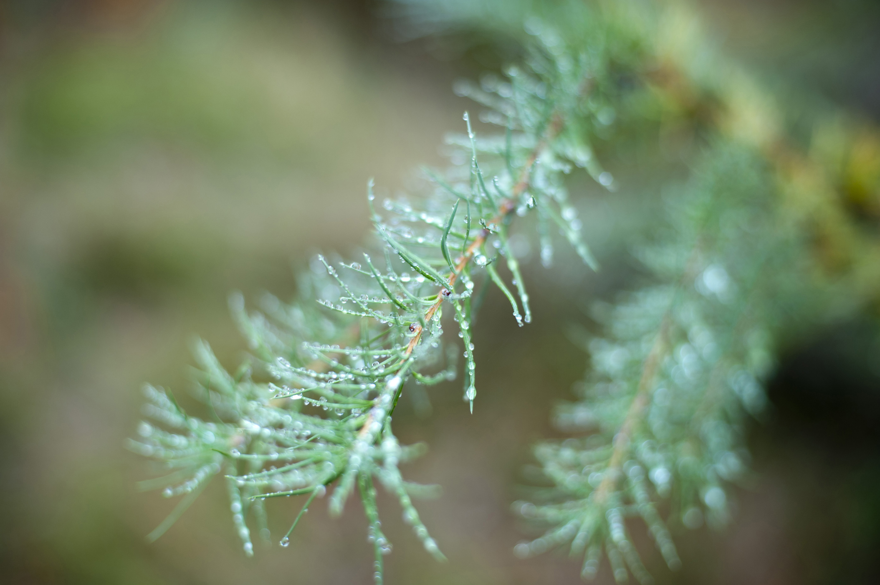 Photo Title: Close-up of evergreen fir branch with drops of water