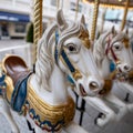 Keywords: amusement, fairground, funfair, park, animals, carousel, closeup, heads, horses, merry-go-round, ride, stationary, prancing, snorting, entertainment