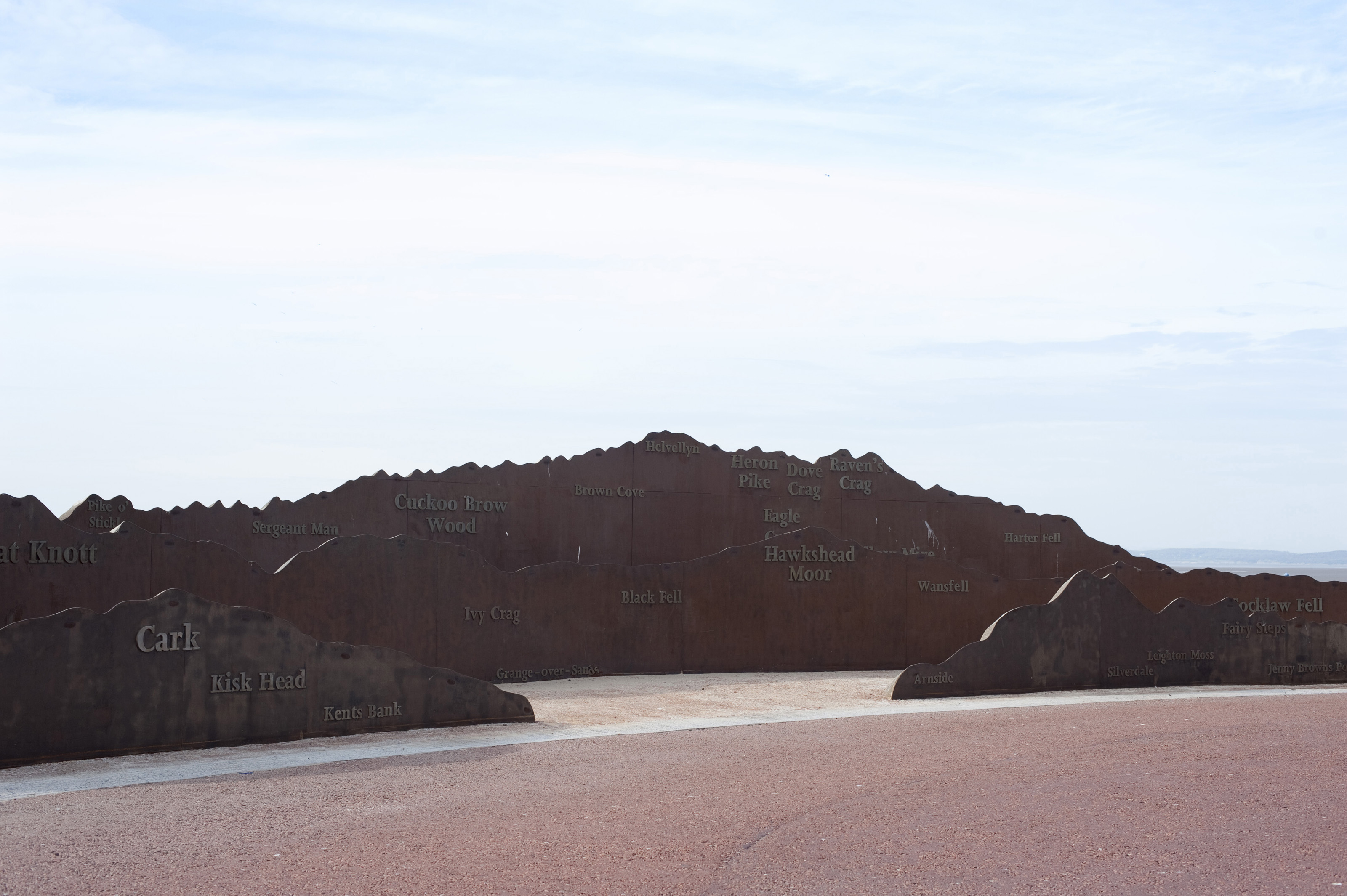 Lake District Hills sculpture on the beach at Morecambe, Lancashire
