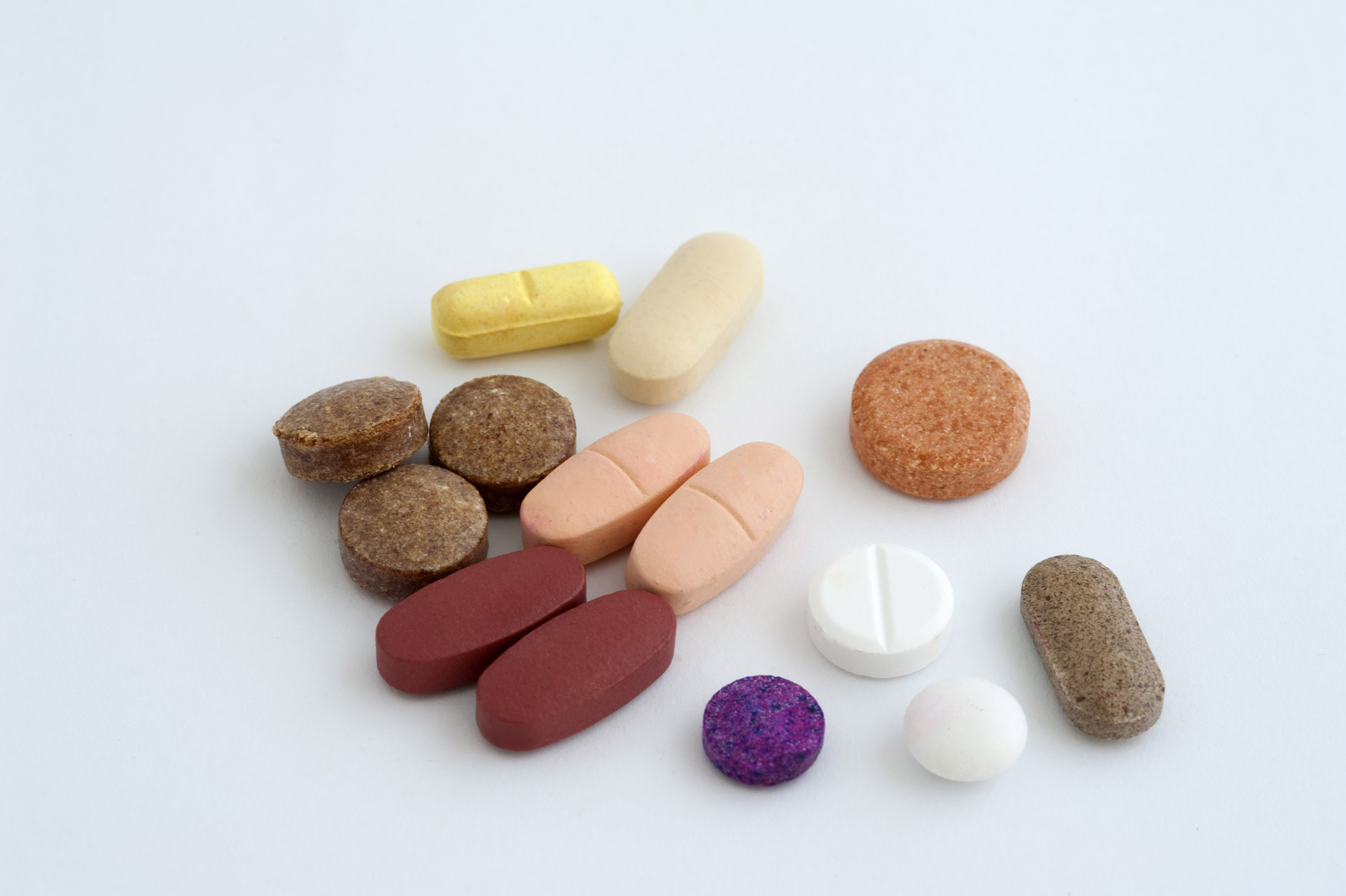 a selection of pills on a white background